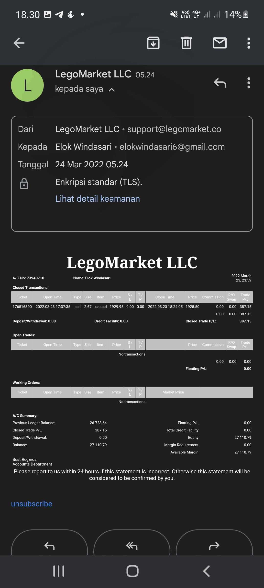 selamat malam, mohon bantuannya saya tidak bisa menarik dana dari Broker ini sejak Februari 2022. Alasan yang saya terima adalah whitelabel broker Lego yang ada di Indonesia sedang migrasi Web berbulan-bulan dan saat ini web nya tidak bisa dibuka (seperti gambar terlampir). Mohon bantuannya dapat membantu saya untuk menarikdana saya di sana semuanya. untuk bukti saya lampirkan semua baik screenshot akun meta trader saya maupun email notifikasi harian