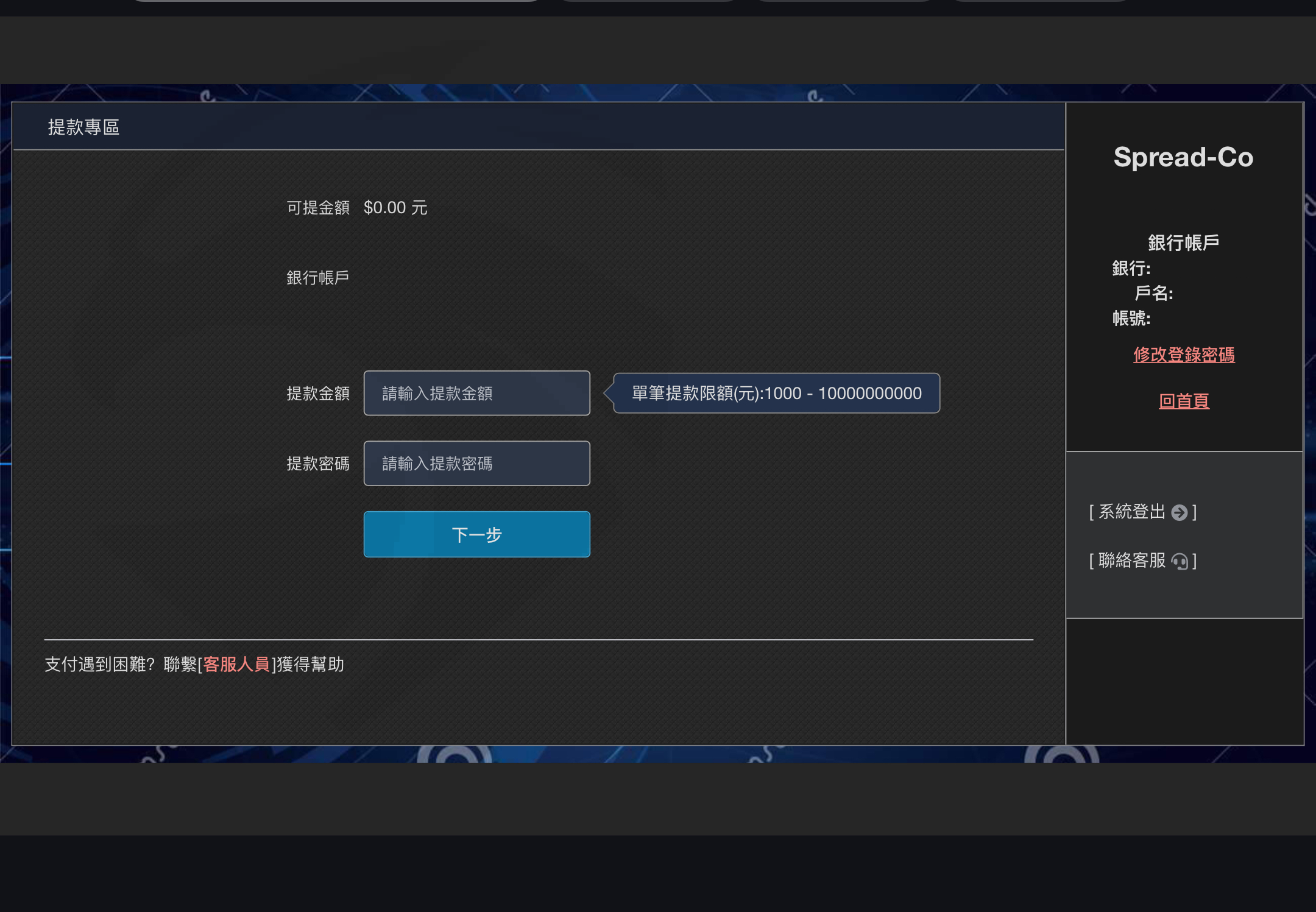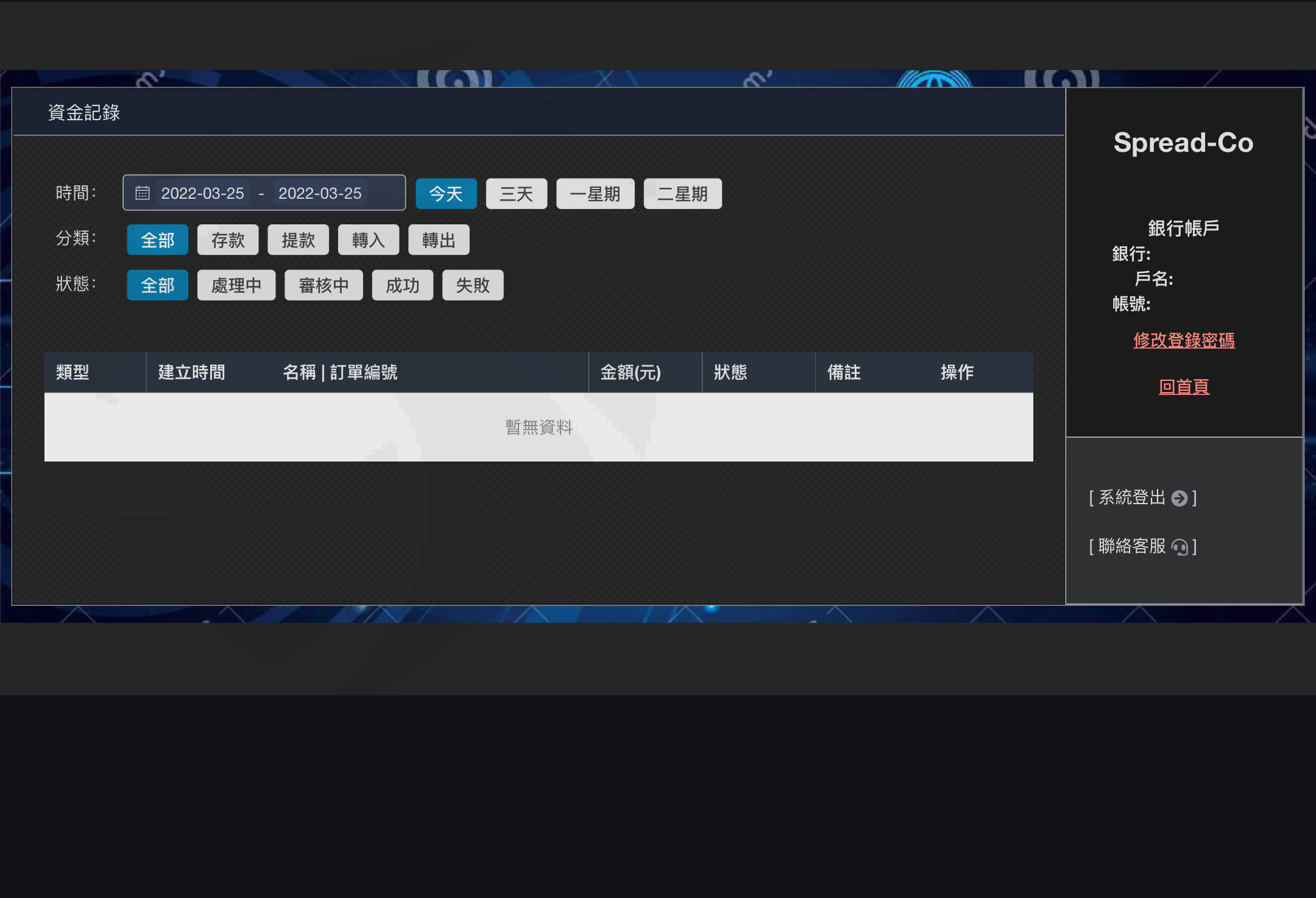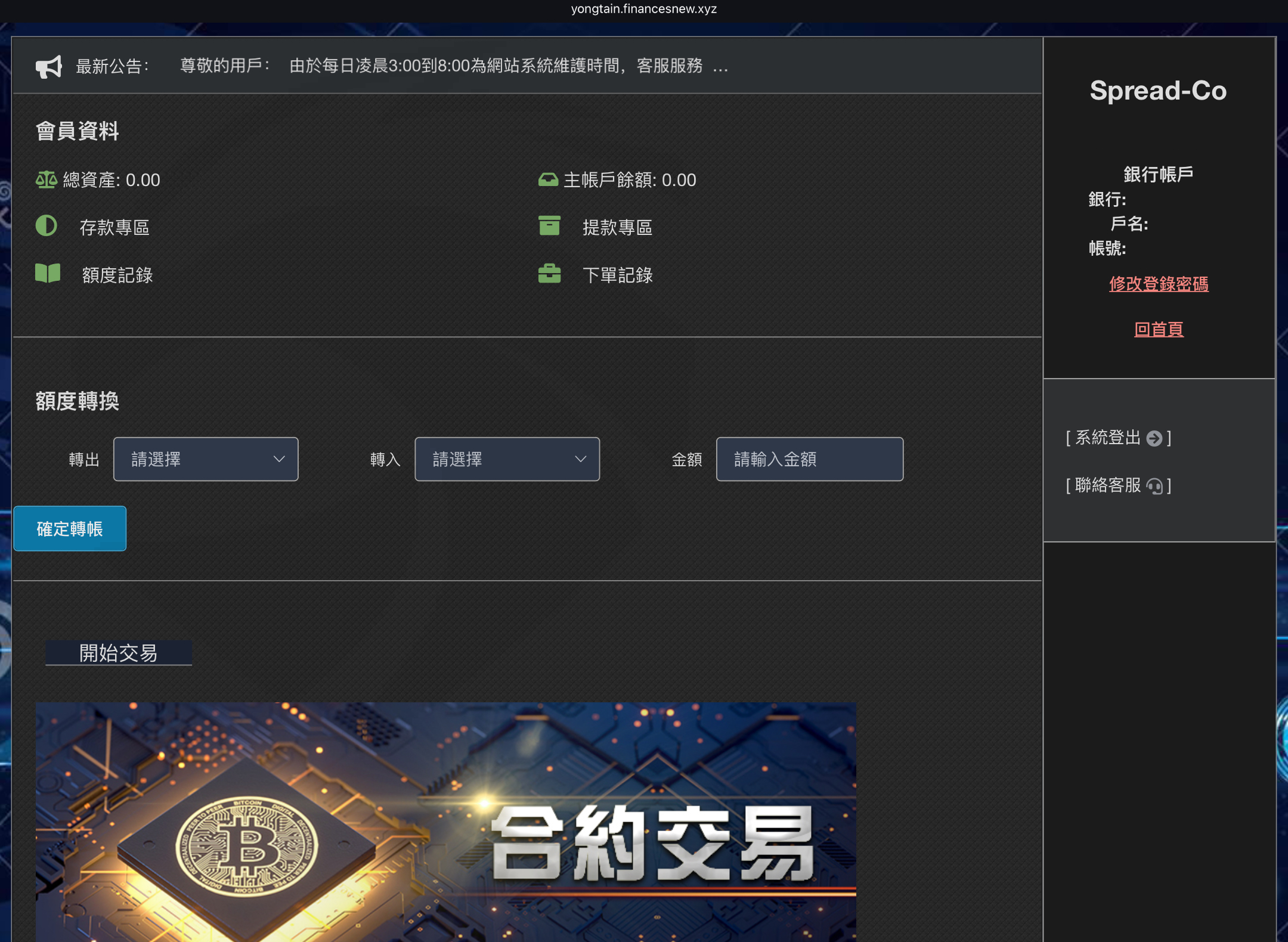 This is a potential phishing website pretending to be spread co.https://yongtain.financesnew.xyz/