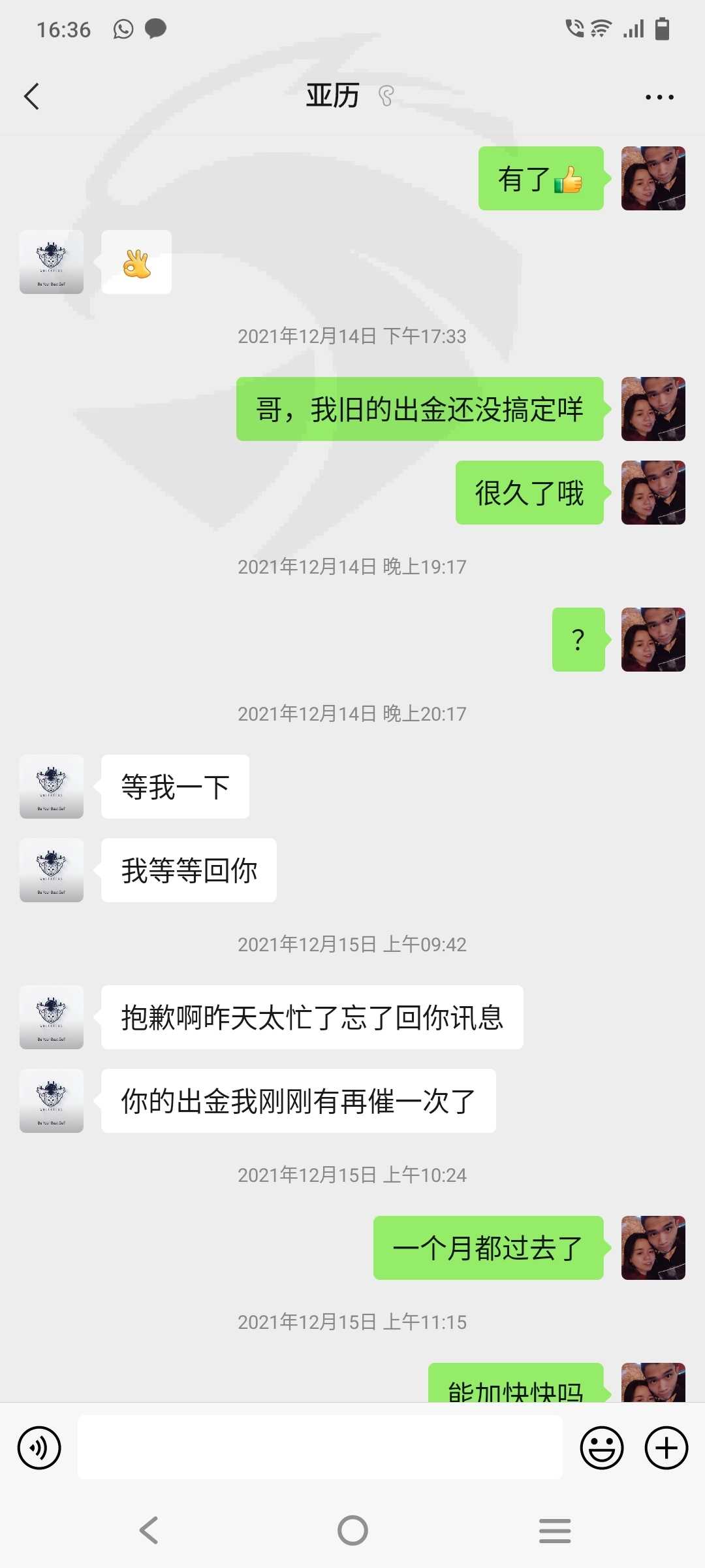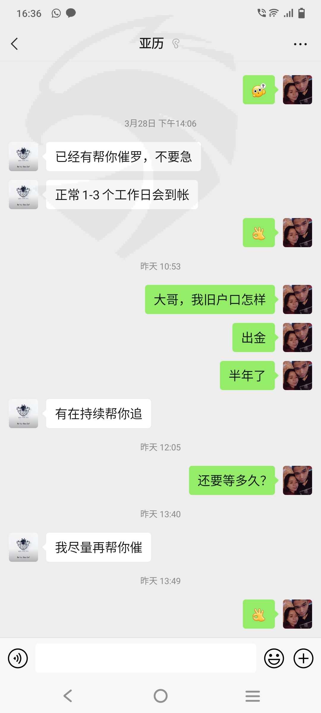 已经要求出金大半年,代理还是一直说会尽快,完全一点效率都没有,大家别被骗了,根本不会出金