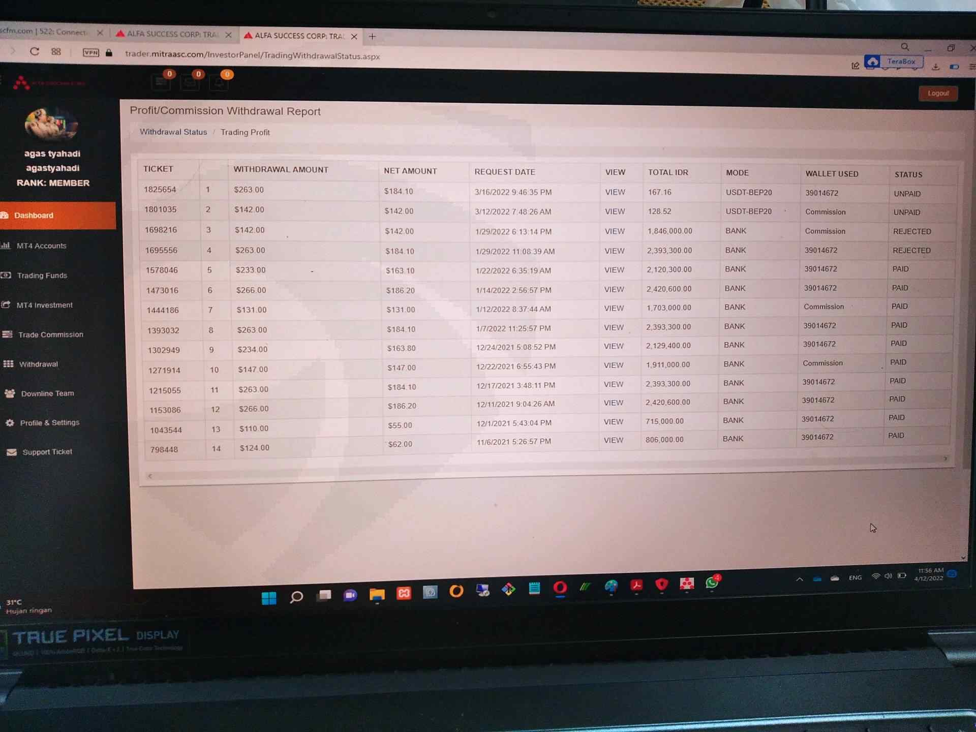 入金5200美元,需要提取5363.45美元,被拒绝,现在alfa succes交易商已跑路,网站无法访问