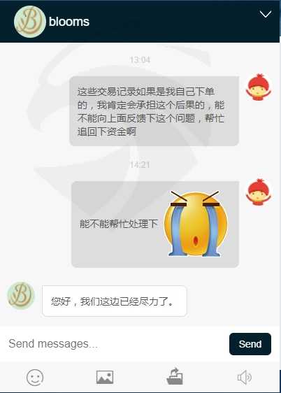 发生以上事情,肯定和平台风控有关系,平台技术也承认开仓习惯和我开仓习惯不一样,如果客户在平台被盗贼通过非法交易变成平台的盈利,而且平台风控没有邮件提示或者临时冻结账户保全客户的本金,这是一个非常不人道的做法