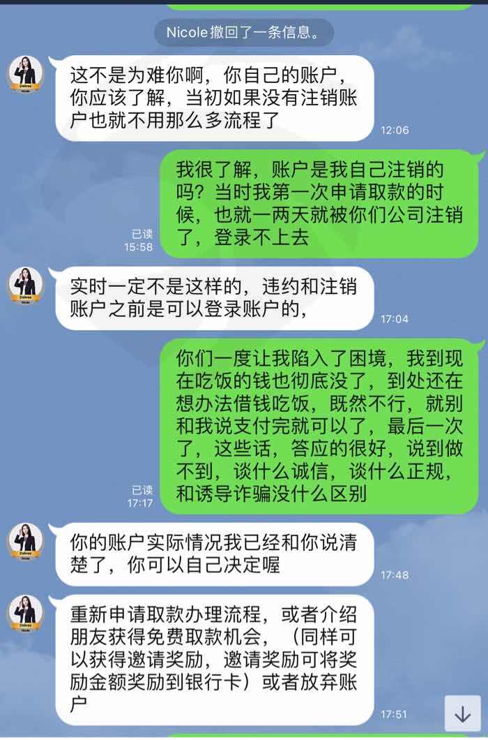 他们会以各种理由让我支付高额费用,诱导我介绍别人进来投资,我想我介绍朋友进来会和我的遭遇一样,资金有去无回