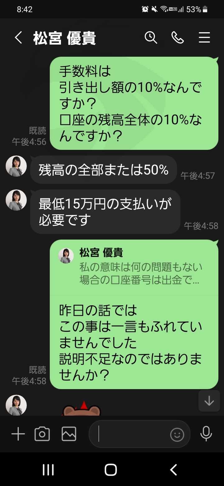 5月24日汇款手续费15万日元,多次确认可以取款,但是被告知不能汇款,所以很麻烦。