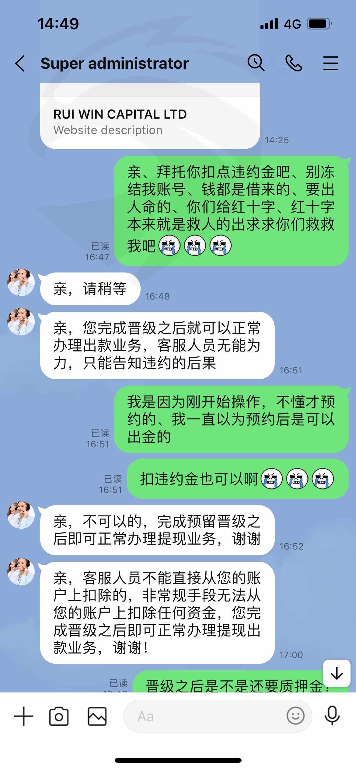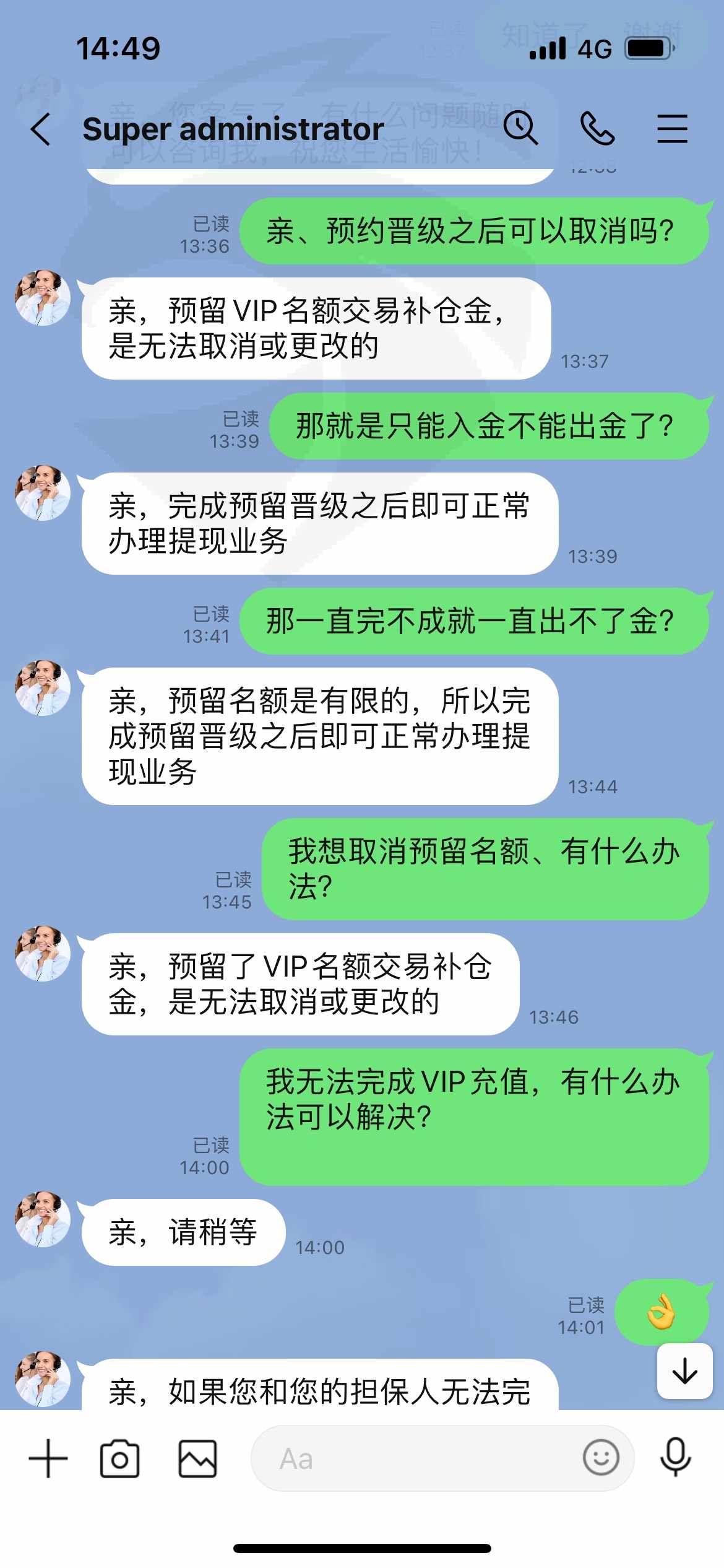 通过此平台操作、刚预约vip就无法出金、现在想解约、可以赔付解约金、但平台不准、要冻结我资金、说给红十字会、为了拿回本金、特寻求帮助、只要本金!