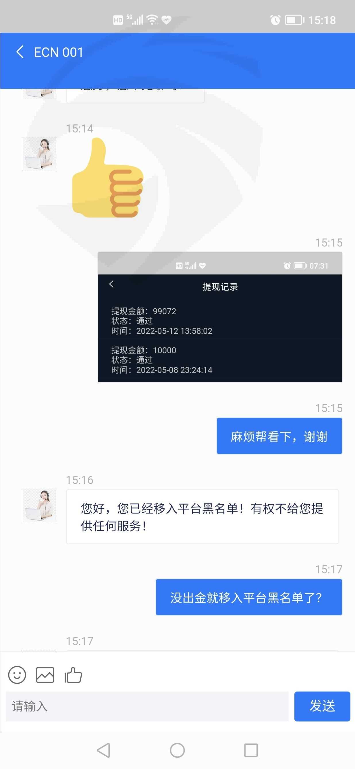 无法出金,叫充值给个人账户,然后就会到平台里,几次充值操作完之后,提现就是不出金,还被拉黑名单了。