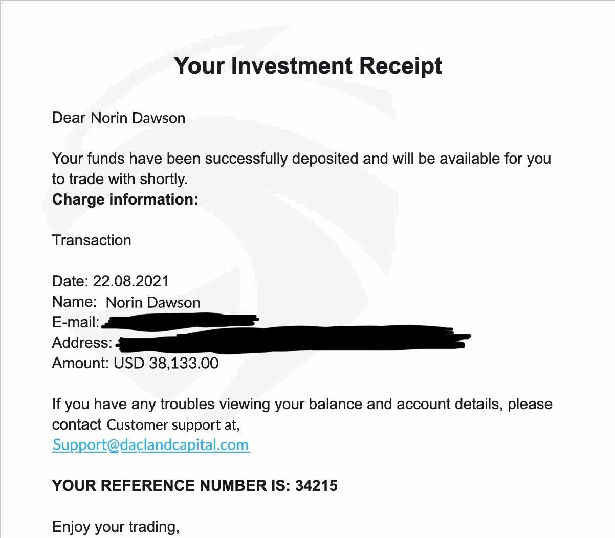 With this company, you start off by making money, you are promised the world and get tangled up in their lies and deception but you don’t realise until it’s too late. The platform is only a smoke screen and during fintrack/ org recovery action i have found out that the members of Dacland capital put investor's money somewhere else and are investing it in cryptocurrency for their personal use.