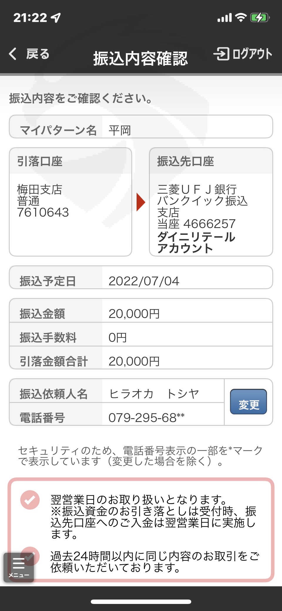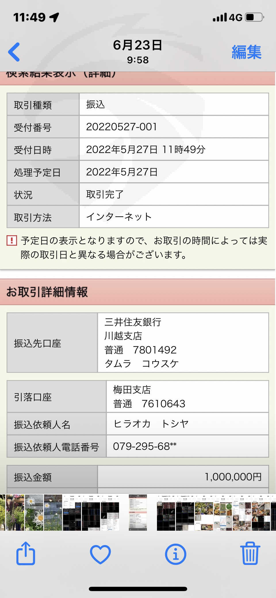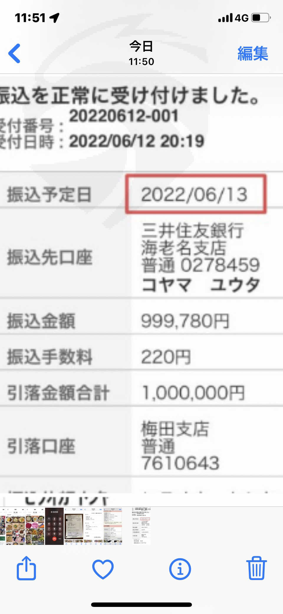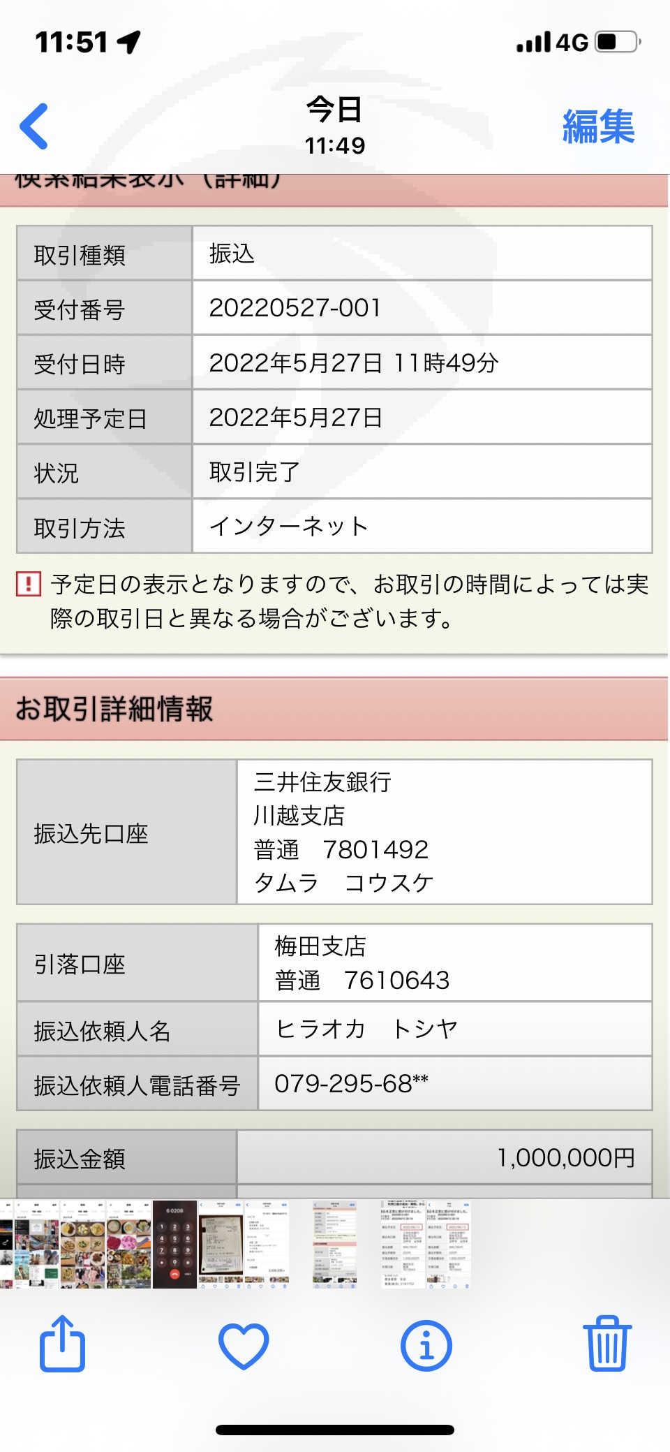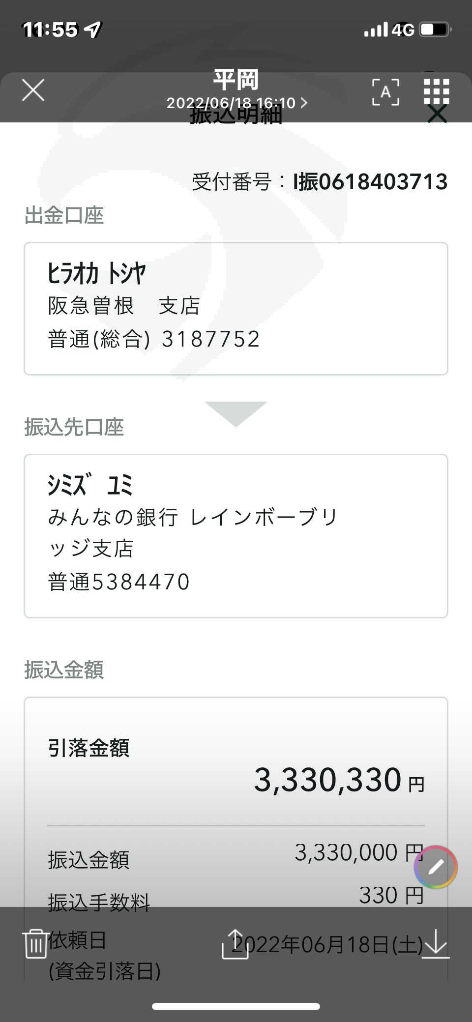 最初に10万円 2回目以降は100万円を計5回個人名の口座に振り込み