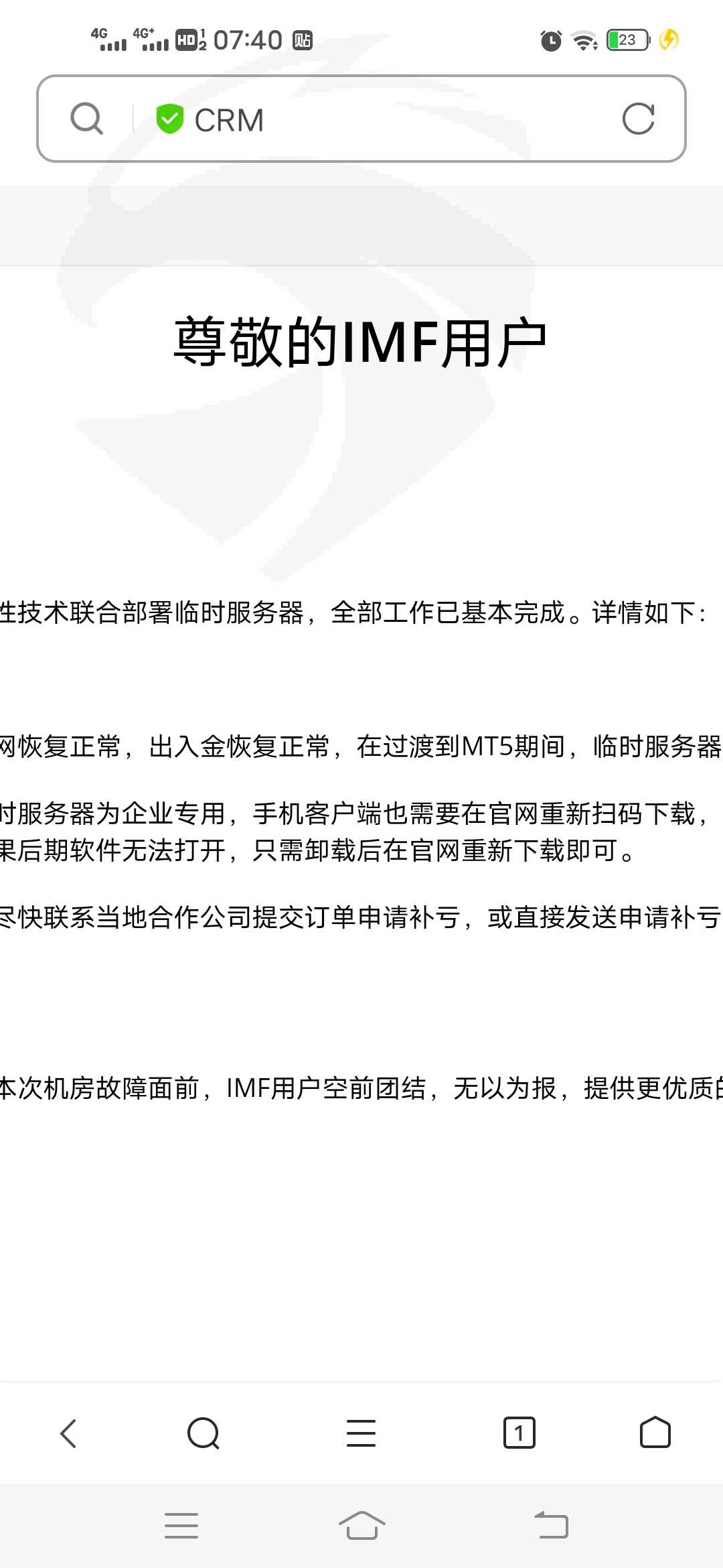 因服务器故障无法操作导致大额亏损,无法联系到平台公司,希望IMF平台可以给予本地代理公司的联系方式并弥补损失约1900美金。