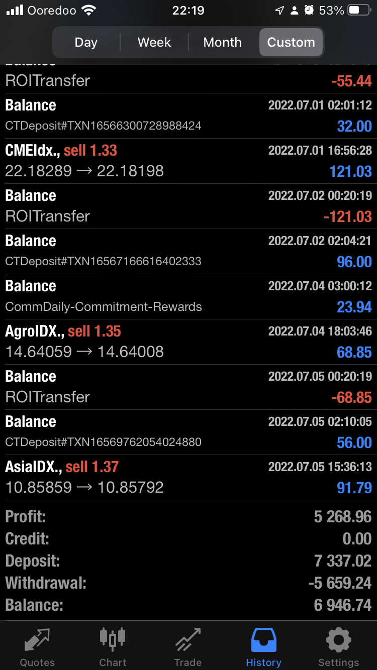 Incepfx的股票交易、期货交易不安全,尤其是在黄金期权中。市场在持续的交易时段变得不活跃,在市场的波动期间,工具变得不可用,很多时候他们没有让我关闭我的合约并给出错误工具不可用(技术问题或后端资金诈骗技巧)但损失继续膨胀,然后在一小时内合约突然关闭(即使我有保证金),原因是市场关闭。 962 美元的损失最终导致 48000 美元的损失,因为我无法关闭我的合同追踪资产〜组织升级证明我怀疑他们肯定在数字平台上进行一些赌场类型的洗钱活动,也看到我带着我的投资走了。我几乎浪费了超过 5000 美元来测试所有黄金期权和特斯拉合约。