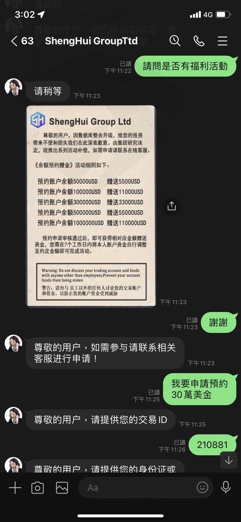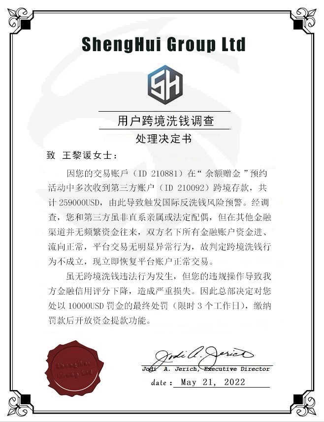 我近期投資一個平台,ID: 210881,在網路上認識的人,要我參加他們的活動,儲值30萬美金贈送3萬3美金,他說會一起幫我完成,當時活動內容也沒有說明活動規則,然後我就跟朋友一起完成儲值任務後,客服人員說:「您账户存在多笔三方跨境资金存款,共计金额为:259000USD。按照国际金融管理条例规定,需要缴纳该笔资金5%所得税,共计为:12950USD,请您在申请提款后7个工作日内完成缴纳,缴纳后方可正常提款,逾期将产生高额滞纳金,并会对您的金融信誉造成影响,请按时纳税!」