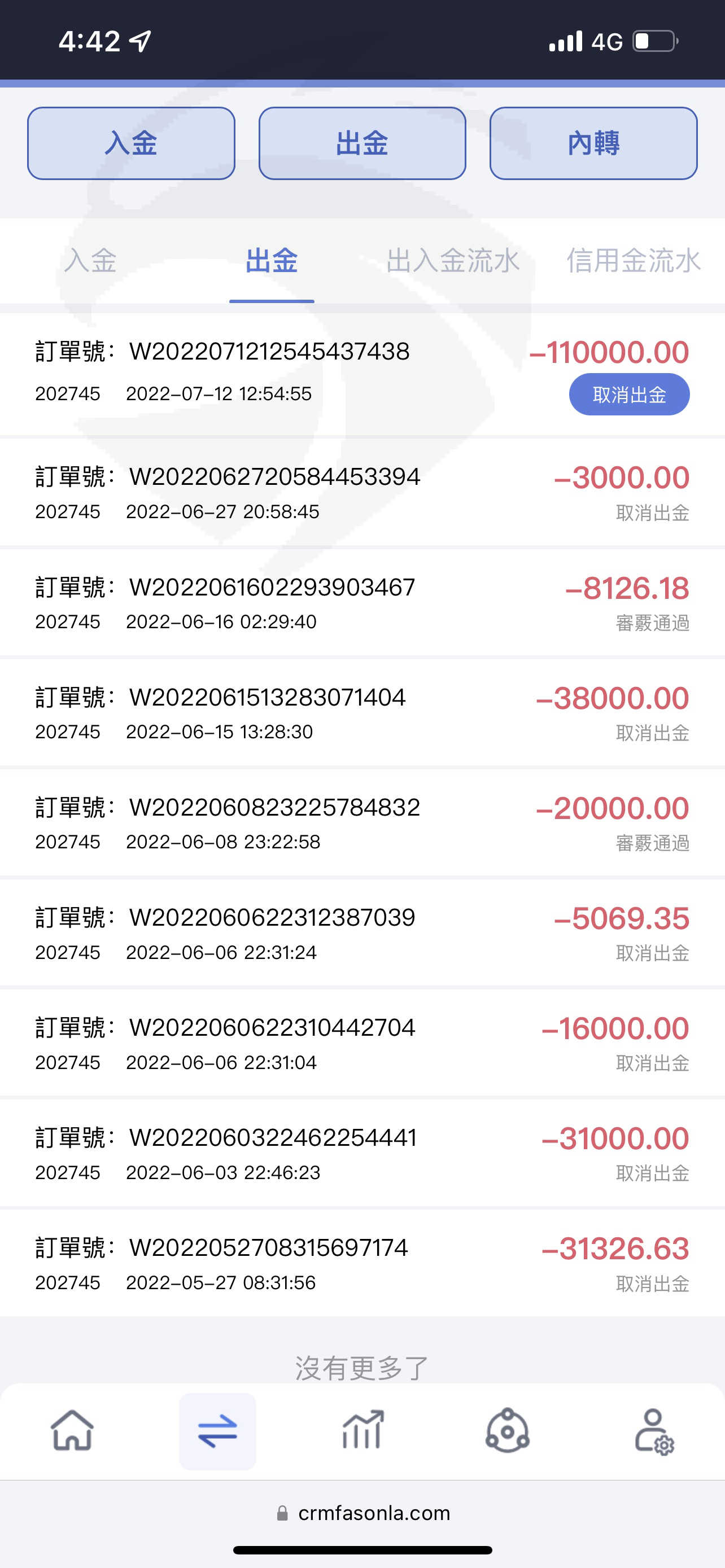 帳戶內盈餘完全無法儲金,客服經理要求需要繳納紛爭後才得以出金。