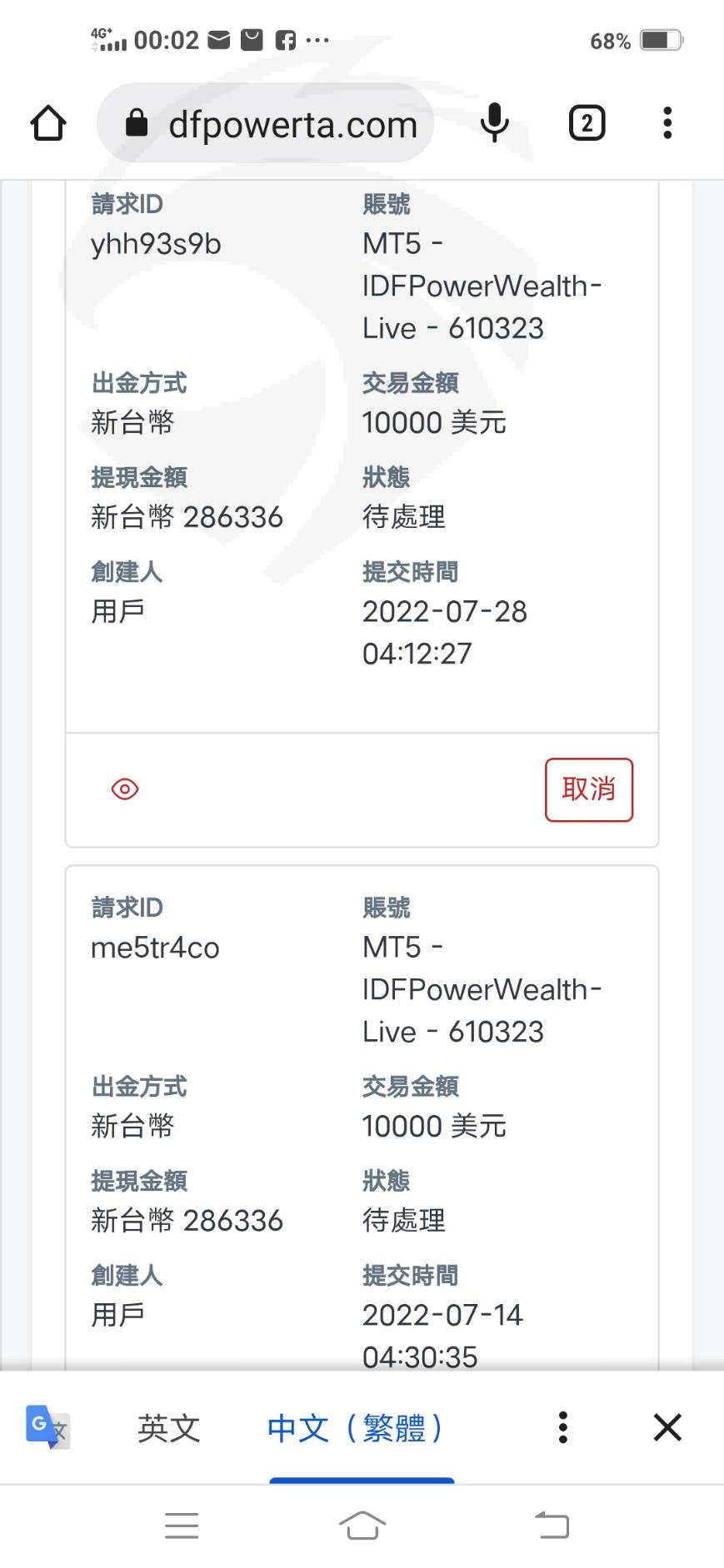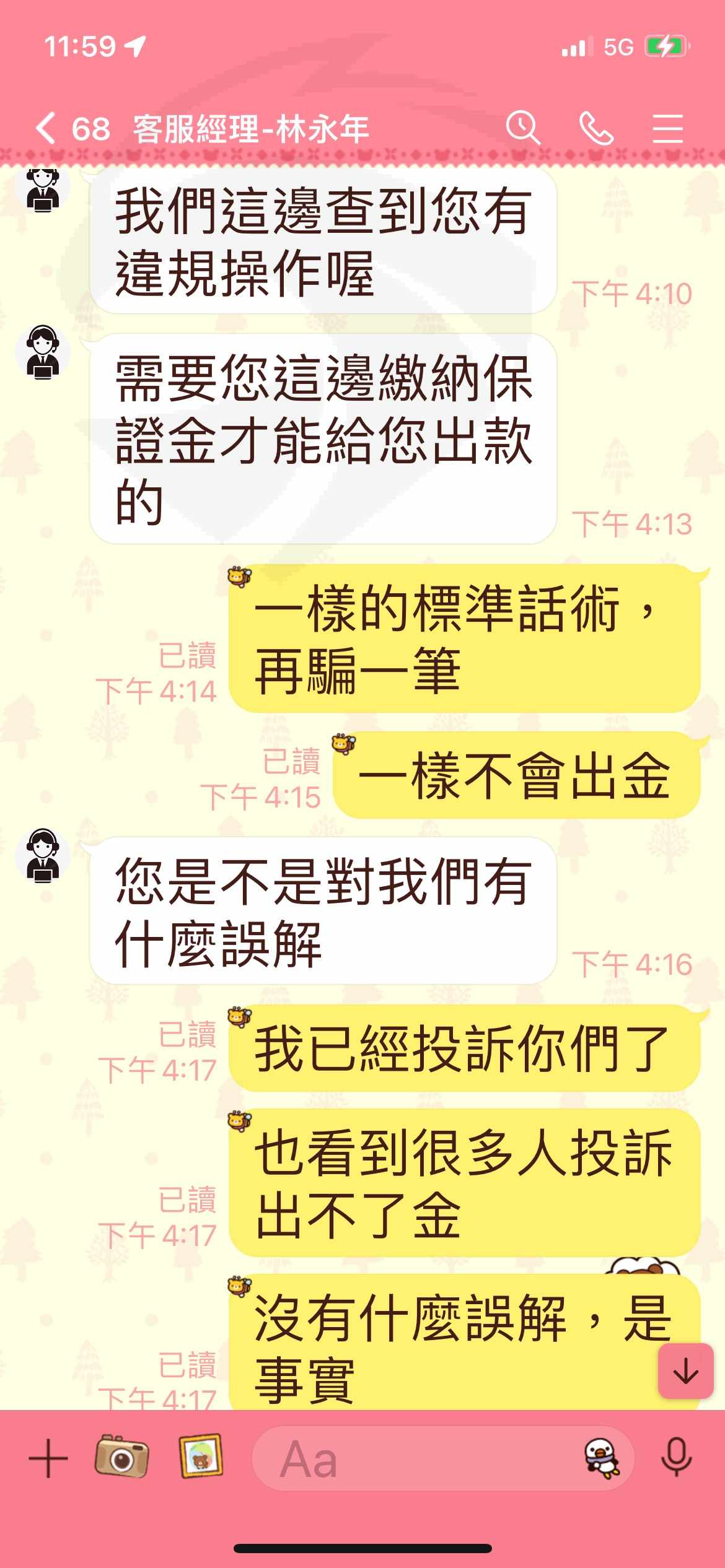 6/18說系統要更新就再也連不上官網,6/22和6/23提出出金,客服經理都不回覆,人也消失了,7/2號客服經理說我違規操作,要先繳保證金,過後我說他們是詐騙集團想再騙一筆,克服經理就再也沒回覆了,從來沒有出過金,畫面永遠停留在待處理,還說我是黑粉,抹黑他們,不是詐騙集團,請問是什麼?