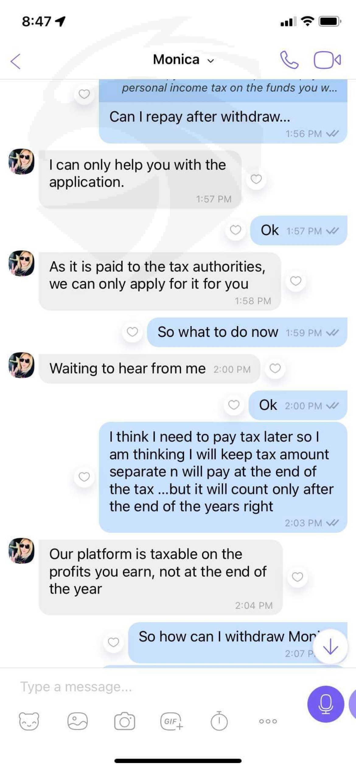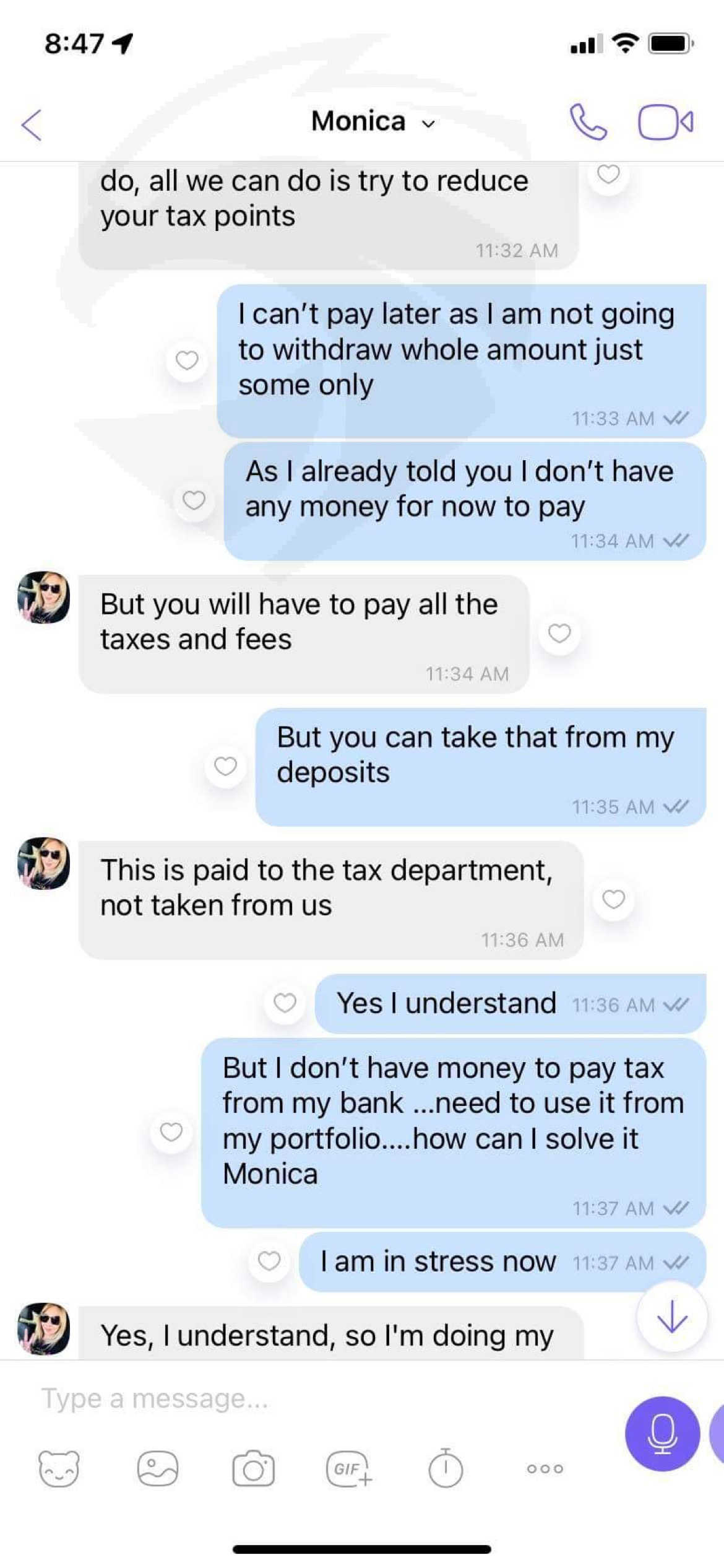 around 949k usd with profit but when I try to withdraw they are asking me to pay tax 20% i have deposited all the money here now don’t have any money for tax …so please help me out with this they trade usually btcusd forex with MT5 …still my money is there but can’t withdraw please help me out. Monica n devis they are the main person Monica contact : +1 (305) 337-7291