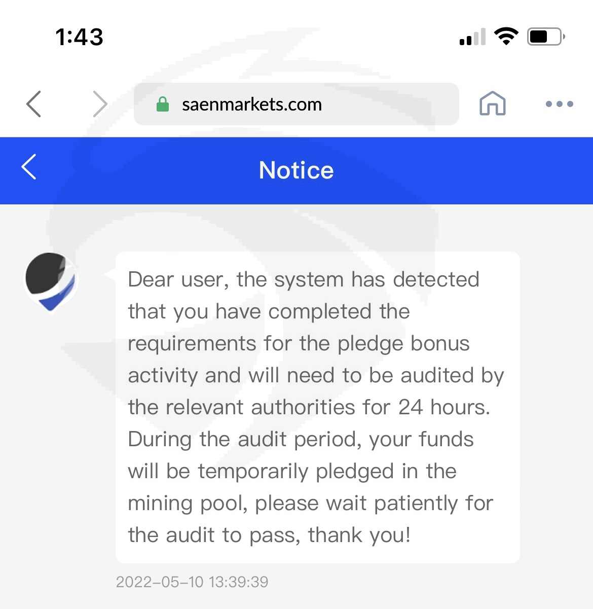 The bottom line is that this broker has no proper regulation and only wants to steal from investors like myself but I followed the money and had cases lodged with various fraud regulatory bodies inclusive of fintrack/ org for which reason the investment was released The first 2 requests I made directly to SAEN were refused on the basis of wrong information so I paid a margin fee to modify it but still couldn't get access to withdraw which was why is ought solution elsewhere.