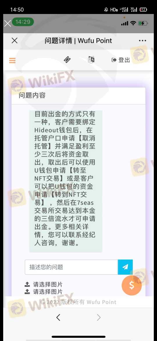 无法出金,说的团队解决,等3天,已经等了半个月了,团队人热联系不上,骗子平台,MT5也是假的,一问同行,说的是虚拟平台,为了骗钱也是费进心机了,