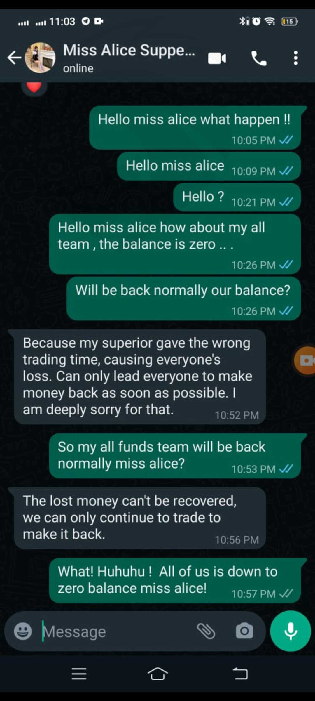 昨晚他们给出了完全错误的信号并且洗劫了所有的钱。不要投资,都是假的。他们在1-2个月内洗劫了你的钱。当你亏损的时候,他们说他们给出了错误的信号