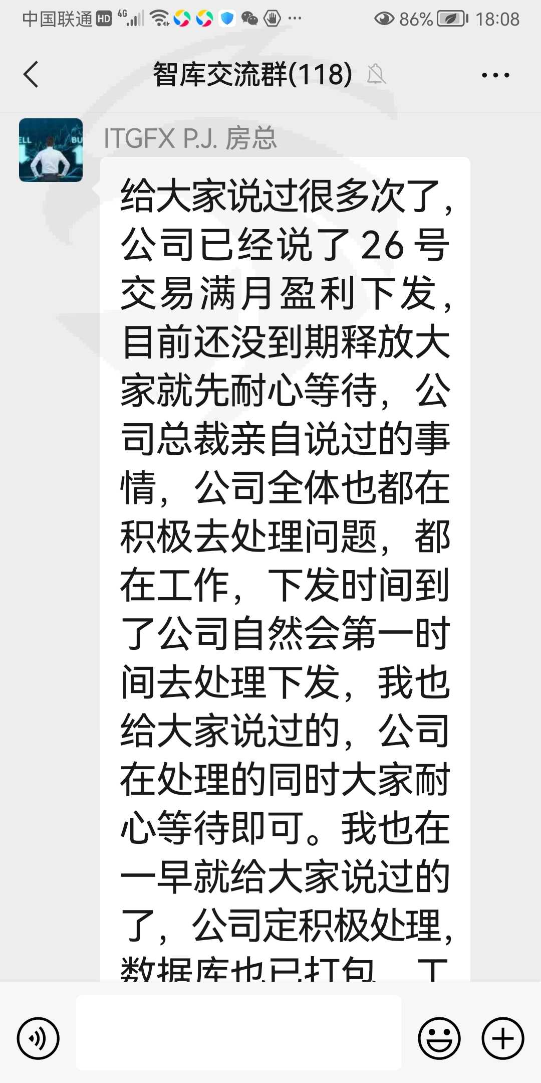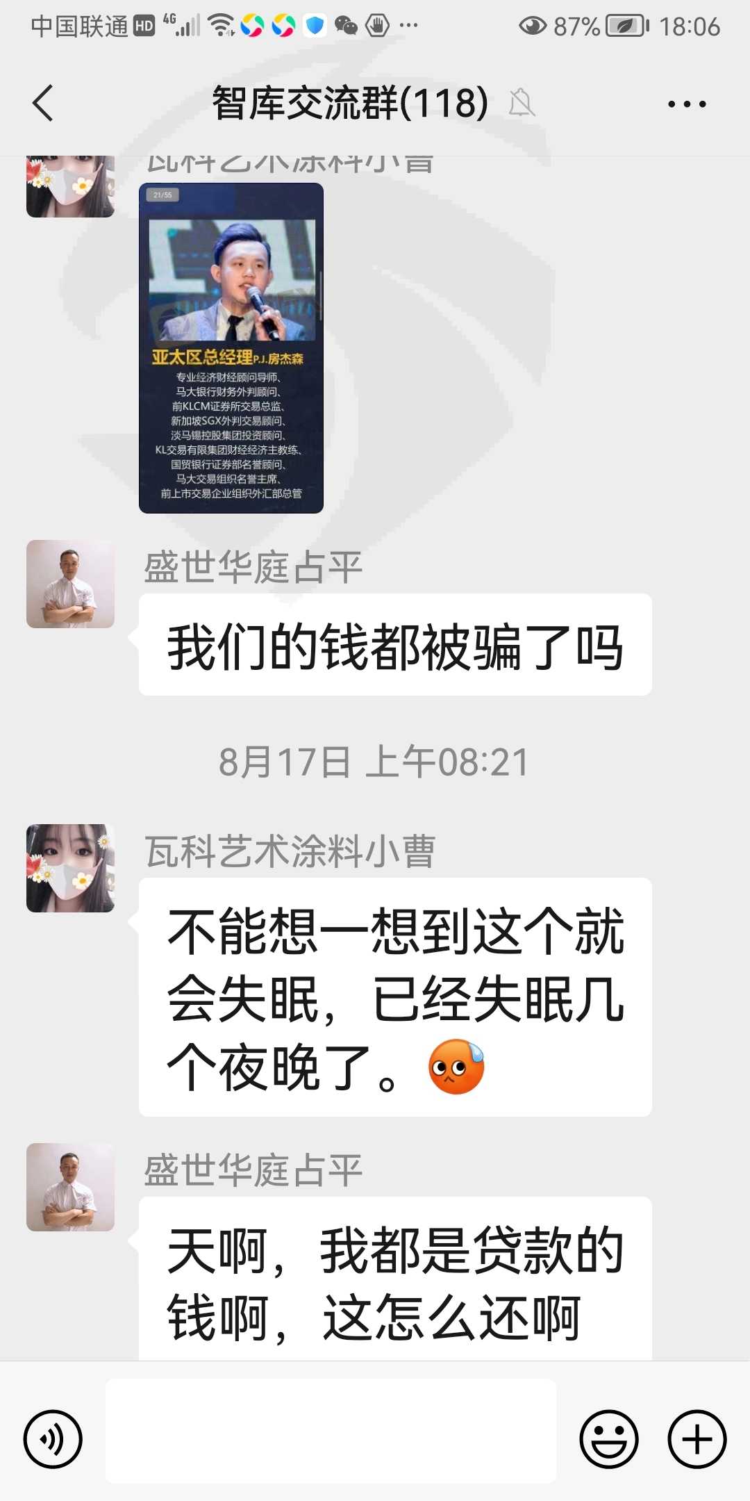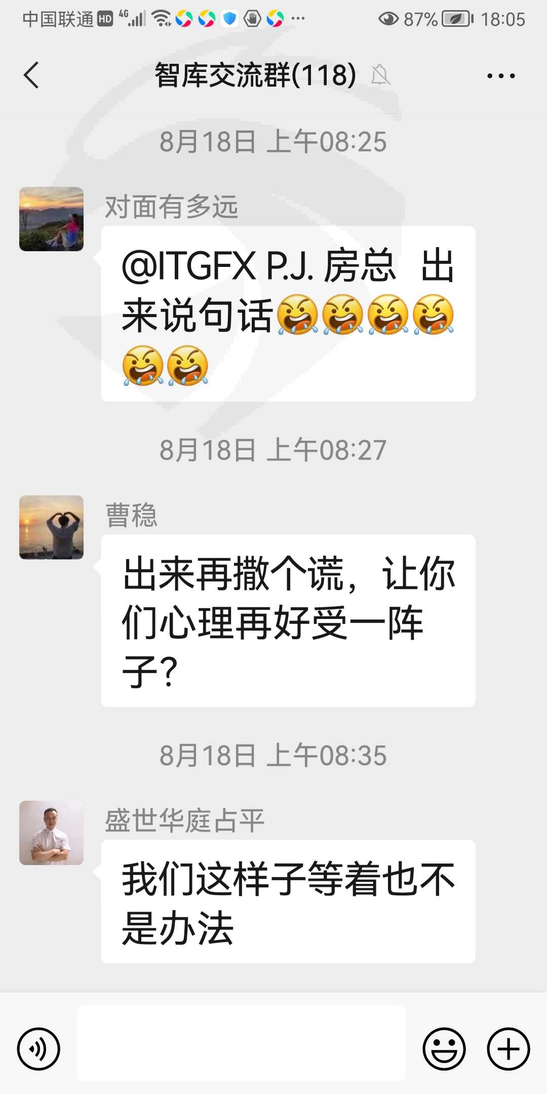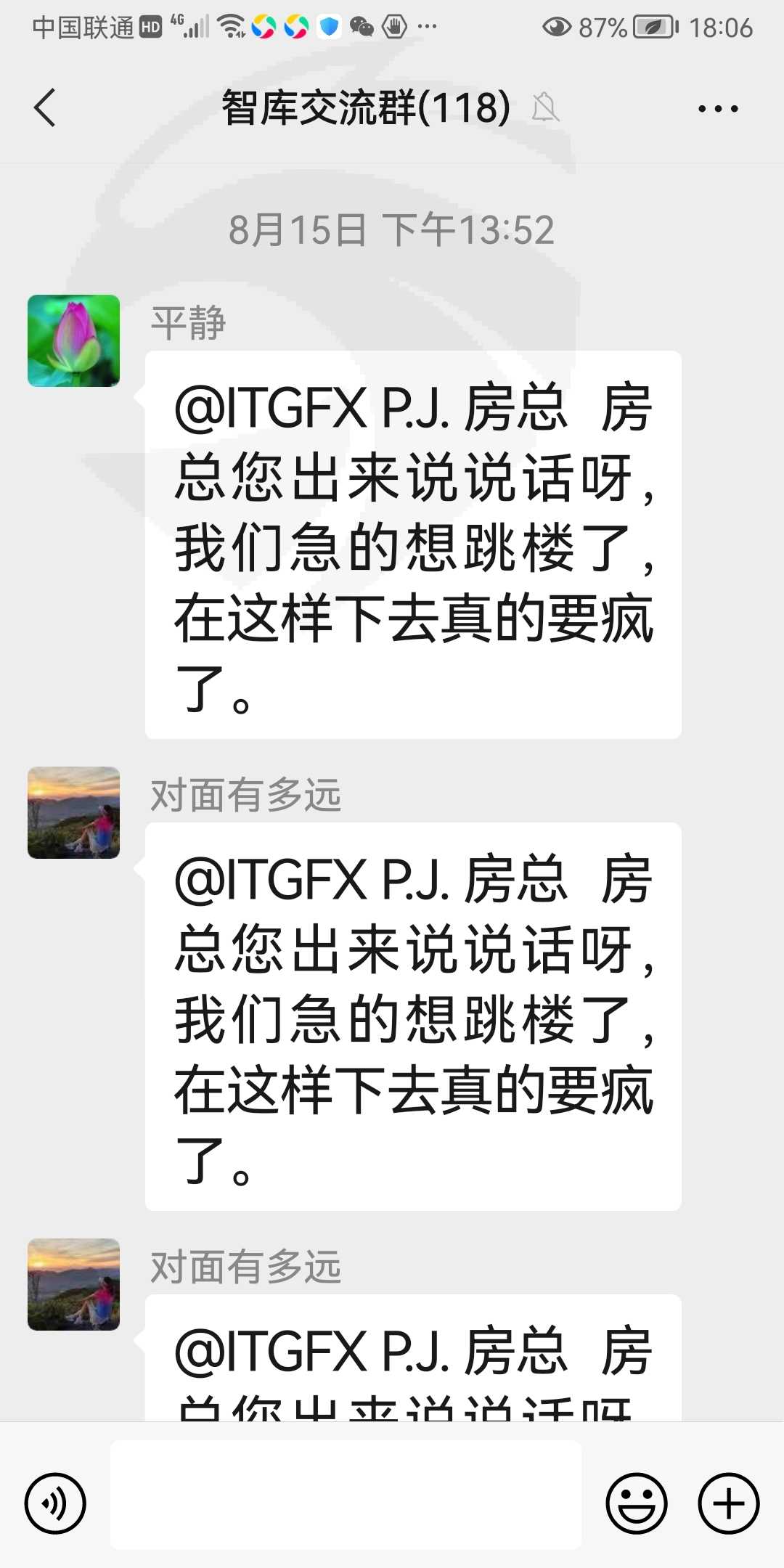 从4月份不能正常出金,到平台说被黑客攻击,再说修复数据,为了继续欺骗投资者搞了一个观摩帐户说是公司为了救市投资了500万美金,说8月26兑现承诺,承诺给所有投资的本金,如果继续合作等数据修复了再分每个投资者帐户的盈利,现在是一天天逼近,房杰森房总好坏都不说了,这种人渣活着简直是污染环境