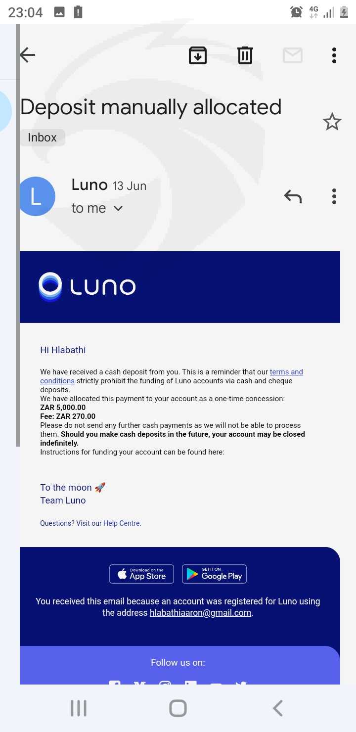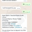 i try to trades with someone call her self Mary Thato and the other one is Andries Antonopoulos i deposit R5000 in my luno app she send to her adress on online trading after she told me to upgrade with R25500 i deposited than after she told me to deposit 10% for company before i received my profits i deposited after few days she told me i must pay for IMF CODE i refuse to pay now is busy massage me about payment of IMF Code all the money i deposited to her is R86500 and i need my money back i need help to get my money back im broke right now because of them