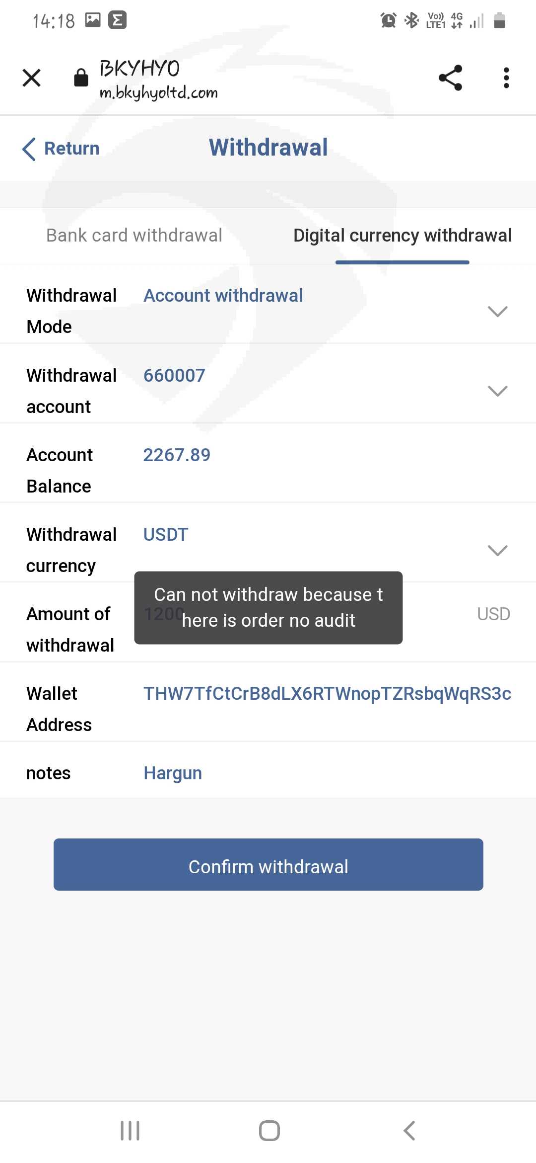 Unable withdraw