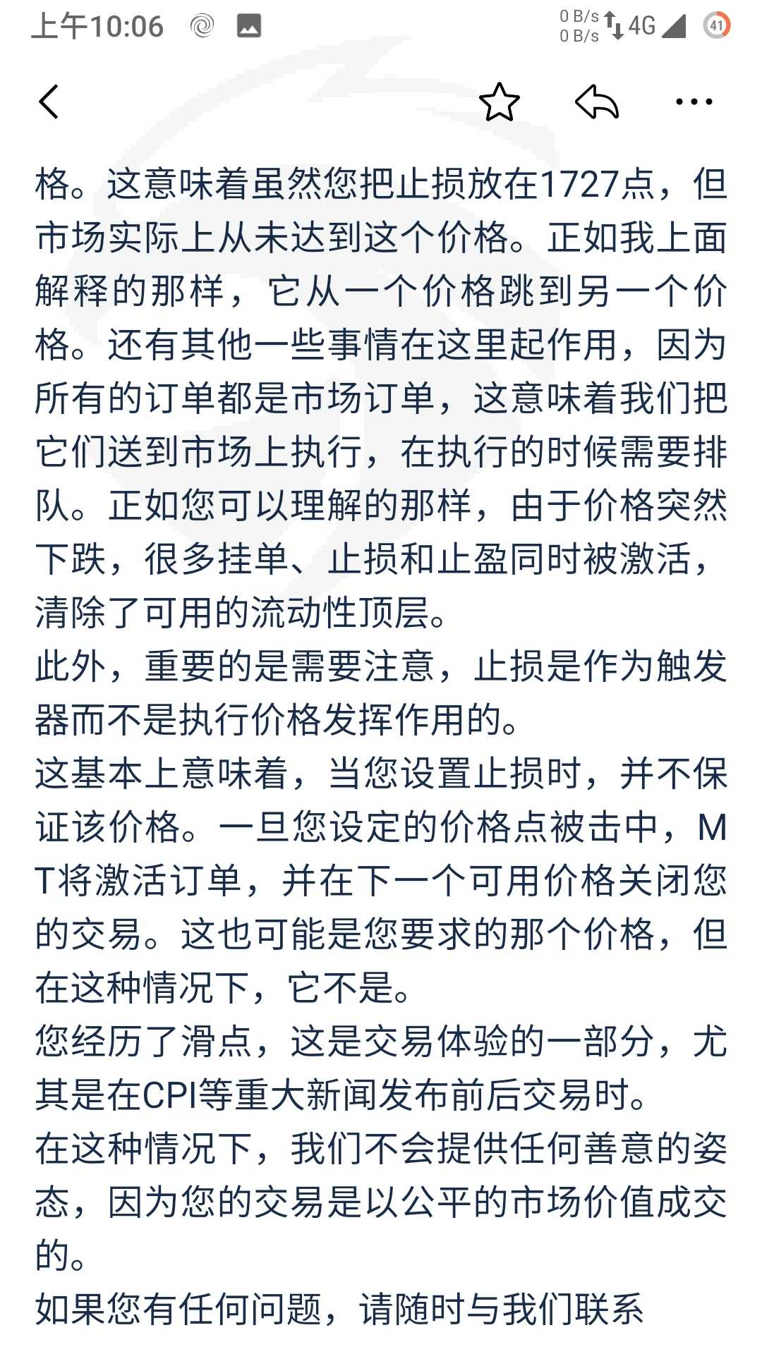 昨日黄金交易,止损设置1727.实际打止损1721.滑点60个点,离大谱。账户几乎没了,没有任何补偿。这他么不是在抢钱吗?这个平台,这几个月,骚操作越来越多,严重怀疑要跑路了。