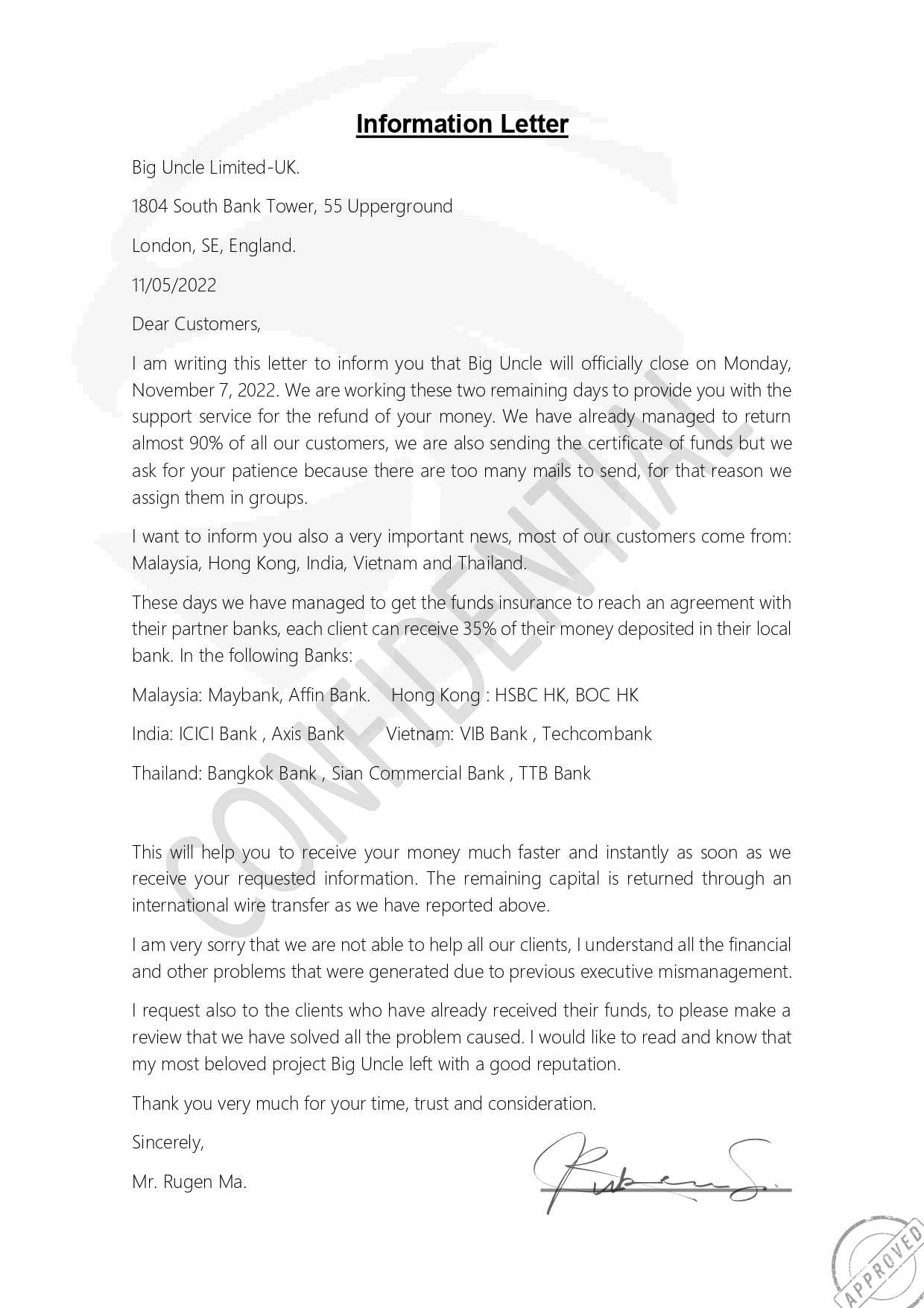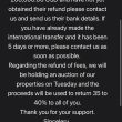 Biguncle交易所一直保留着这笔钱,需要交税。现在他们通过电子邮件发送破产邮件,要求退款。帮我