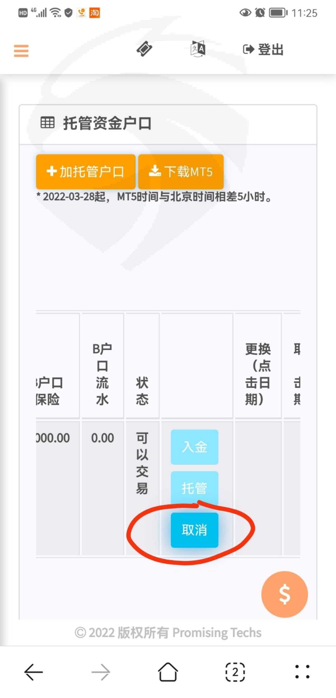 从取消托管至今已有半年,找上线无果,一直让我们等新平台交易,强制性的将我们的部分资金转移到新平台,目前不能出金