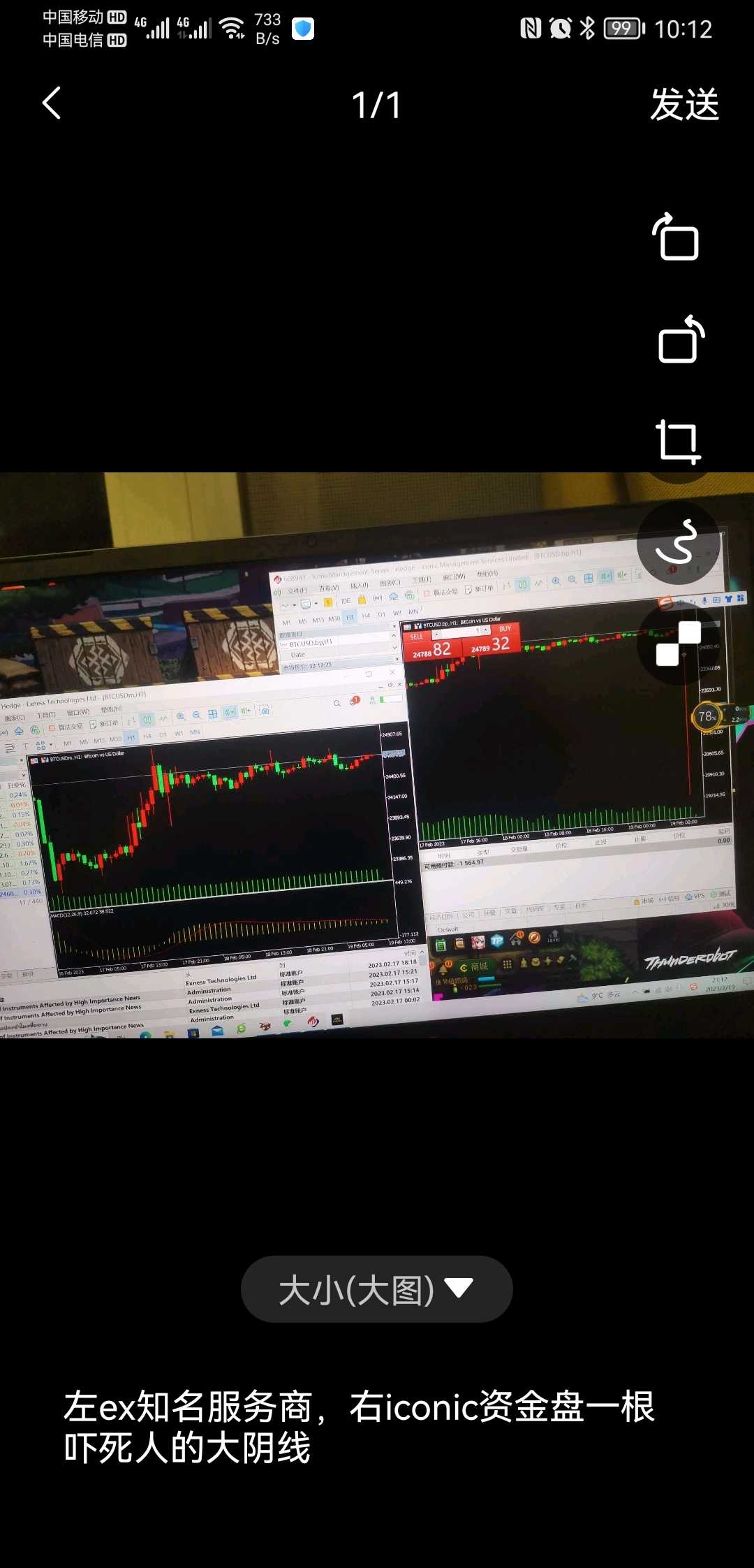 资金盘 走势人为操控收割用户,截图左边ex正规服务商走势,右边iconic大阴线,收割用户