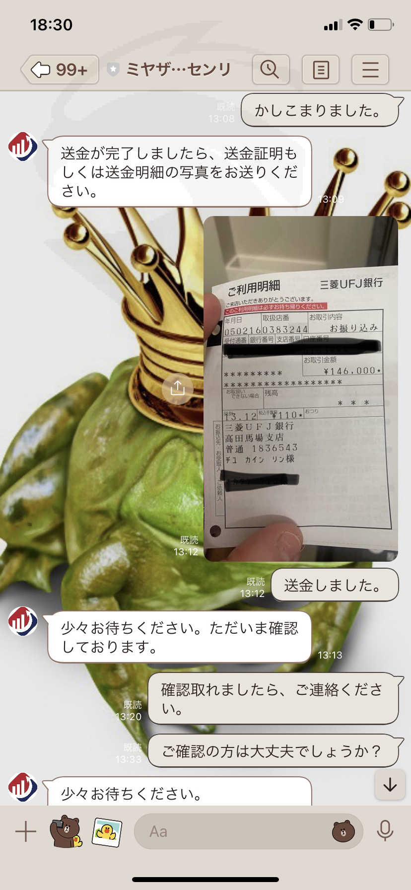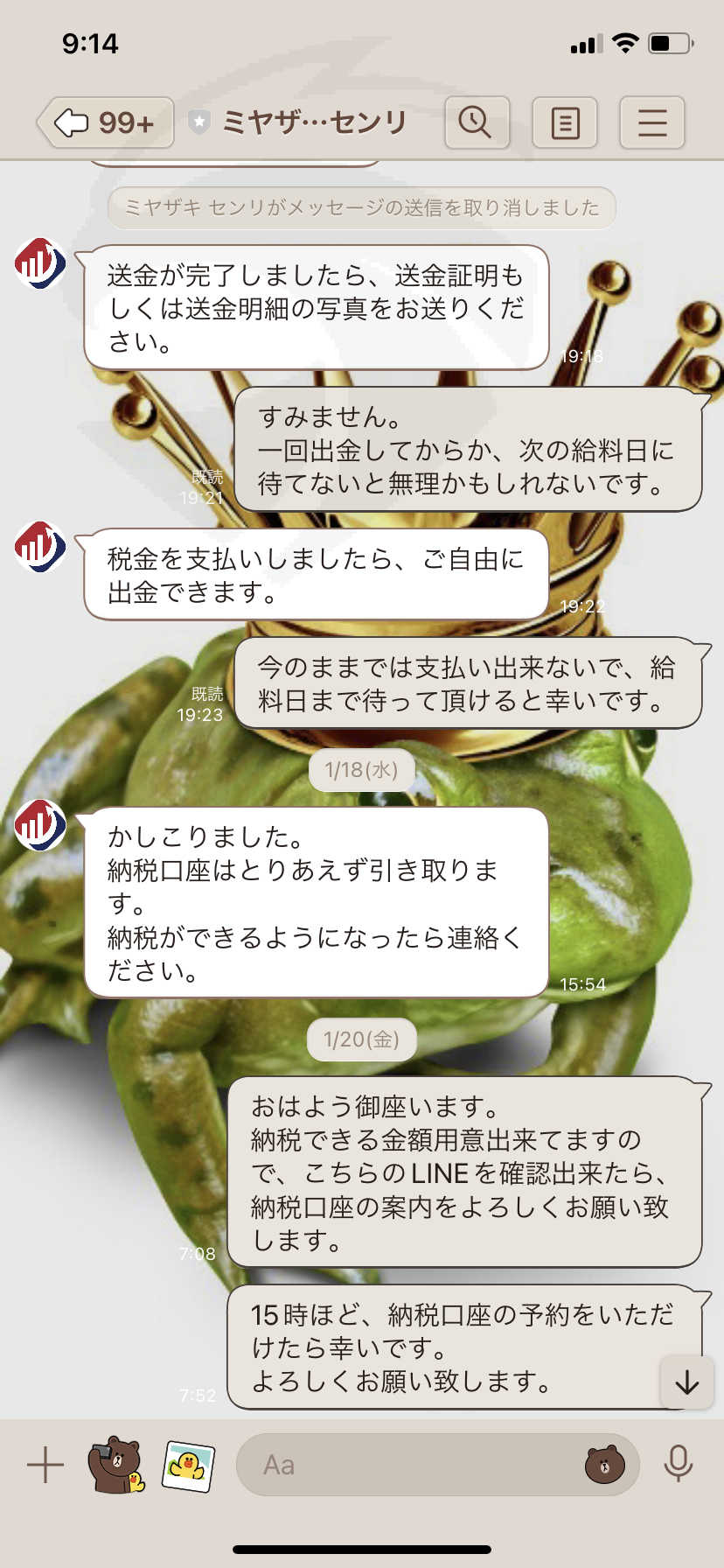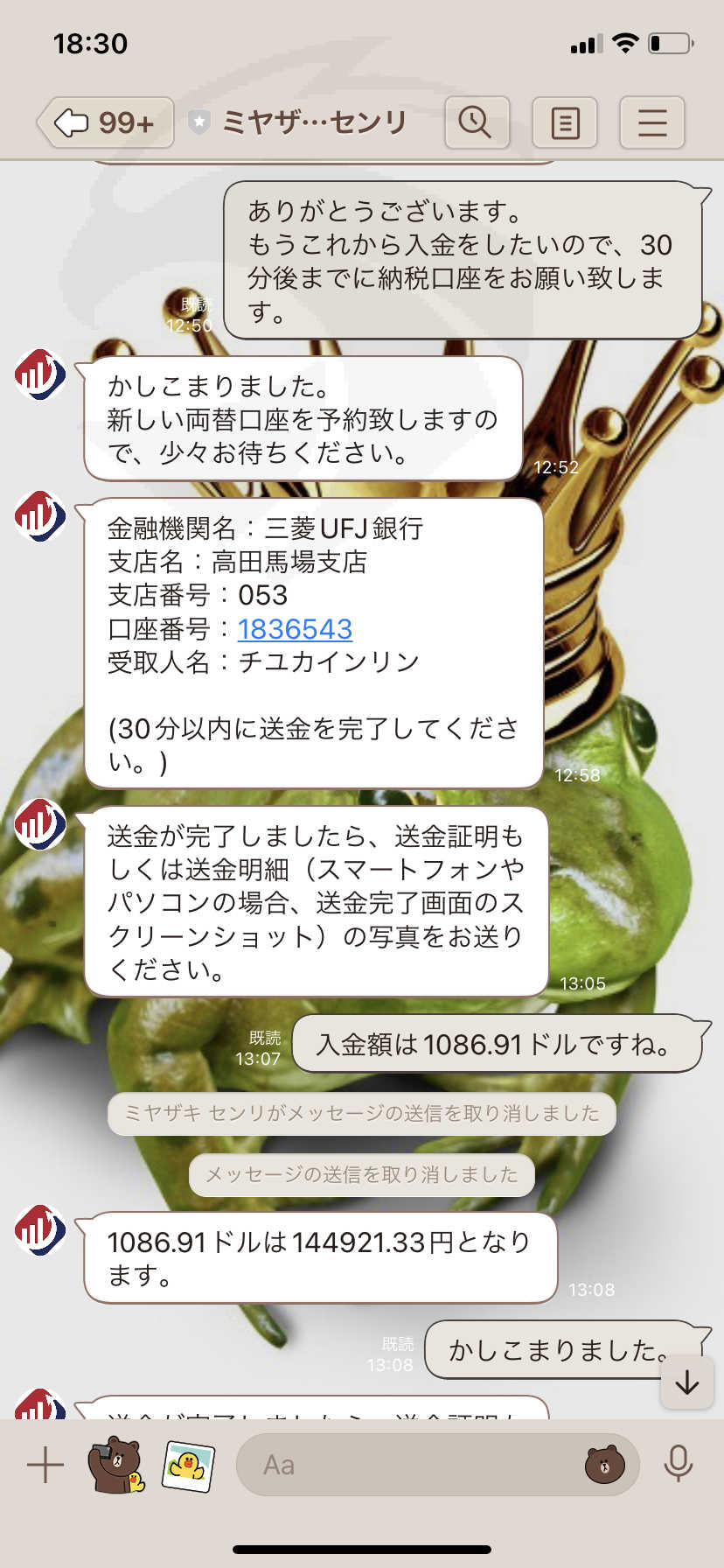 ただ今回の真相公開につきましては、2月半ばから納税出来てから、出金が出来ない以前に連絡が取れなくなった事についてであり、相手の口座情報も以前入金してた時と違う口座情報でもあります。