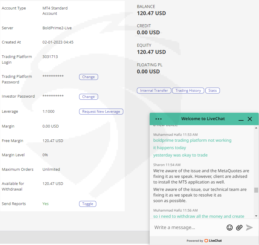 昨天我的MT4 账户运行顺利,但今天我无法交易,我尝试了很多可能的方法,例如重新安装应用程序,重启我的路由器,但这些都不起作用。当我进入实时聊天并要求提款时,它说由于服务器故障你无法提款,他们要求我将平台更改为MT5。我在MT4 中的所有余额都不允许我提取资金,我到底想怎么交易?
