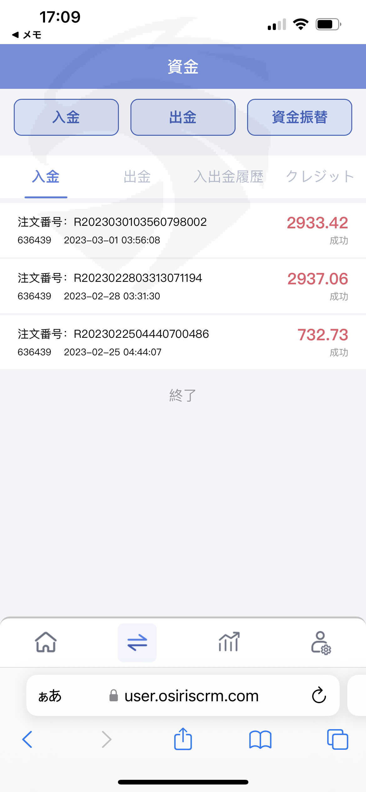 截至 2023 年 3 月 9 日,在 osirisforex 这家交易站份额为 17205 美元。 2023 年 3 月 3 日要求提款; License: 636439 License: YANG TAO 服务器:OsirisTrade-Server 目前(2023/3/9),在名为osirisforex的交易所账户中有17,205美元。我在2023年3月3日提出了提款申请,但是过了几天提款还没有处理,还在审核中。账号:636439 账户名:YANG TAO 服务器:OsirisTrade-Server