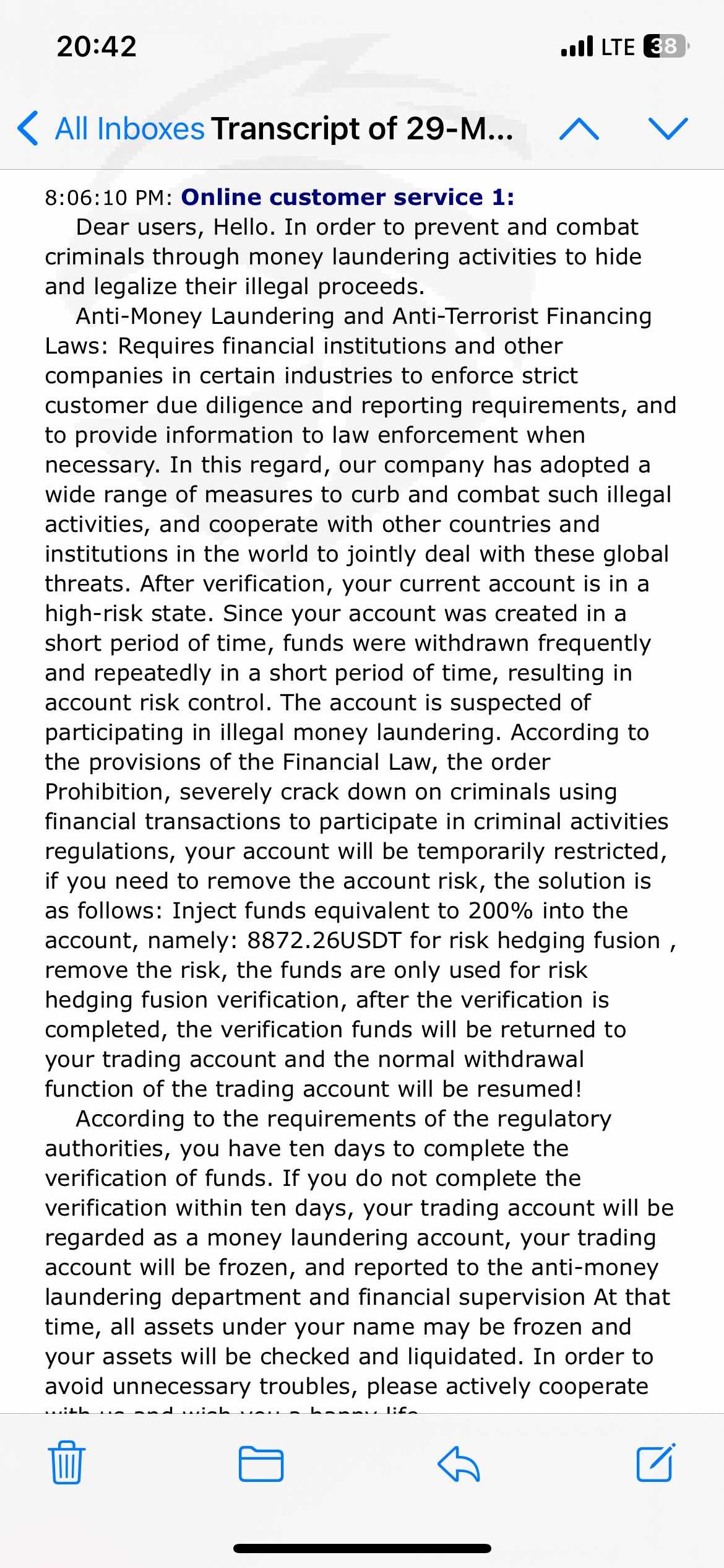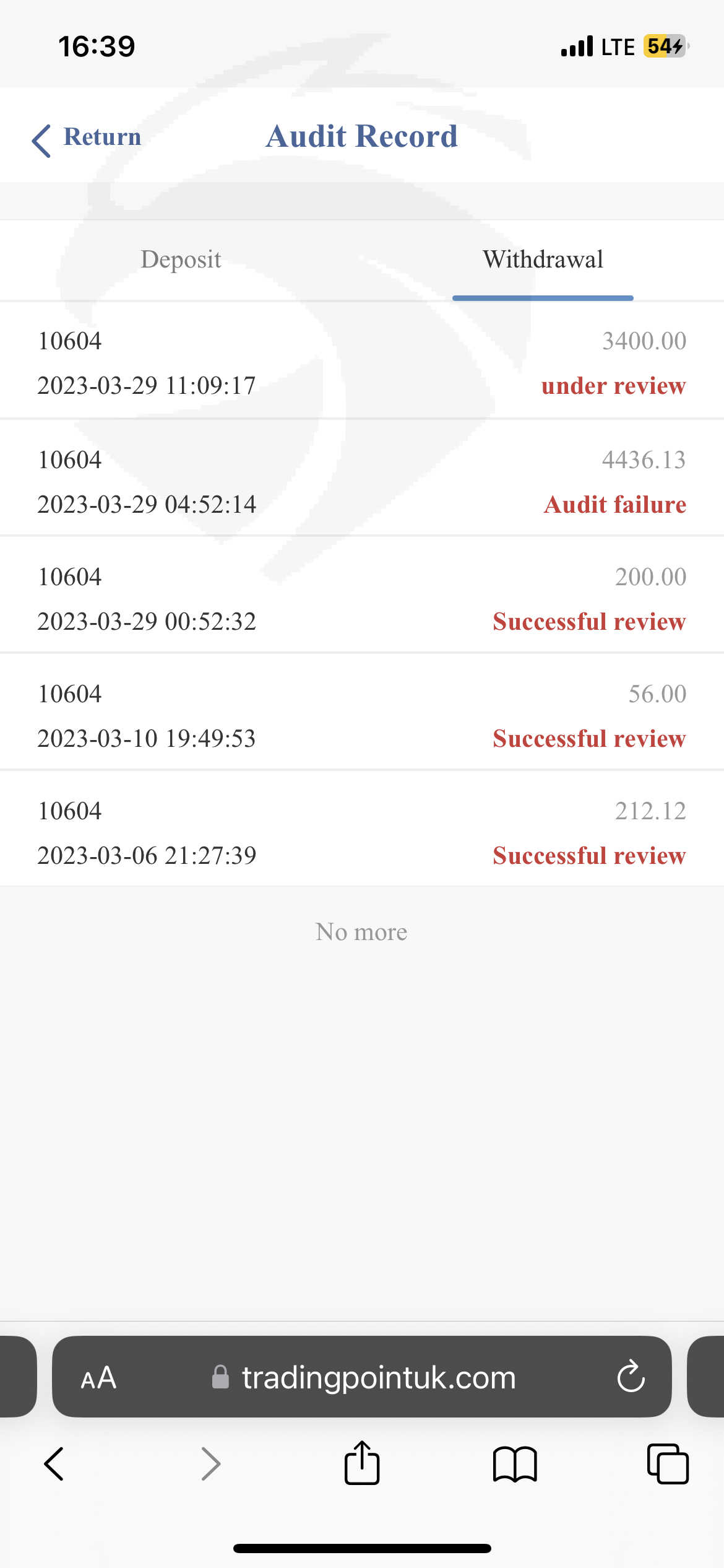 一开始他们在LinkedIn上联系我,之后在WhatsApp上。这个交易商是骗子,他们不让我出金,说我的账户有洗钱嫌疑,如果我不入金被冻结的资产的两倍,他们会平仓我的账户并举报我的账户洗钱。他们专门创建这个平台来骗人,在他们的平台上看到的XAUUSD 的实时价格与其他合法平台一样。他们是骗子,涉嫌洗钱,怎么能阻止这个平台继续诈骗呢?我不能从平台出金,他们让一次出金一小部分金额,但是当我尝试出金更多时,他们会冻结帐户,并且每次入金时他们的网址都有变化,最后一次的网址是:https://tradingpointuk.com
