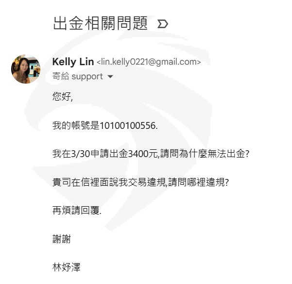 2023年3月29日申請出金美金3456,到今天都不讓出金也沒有任何回覆
