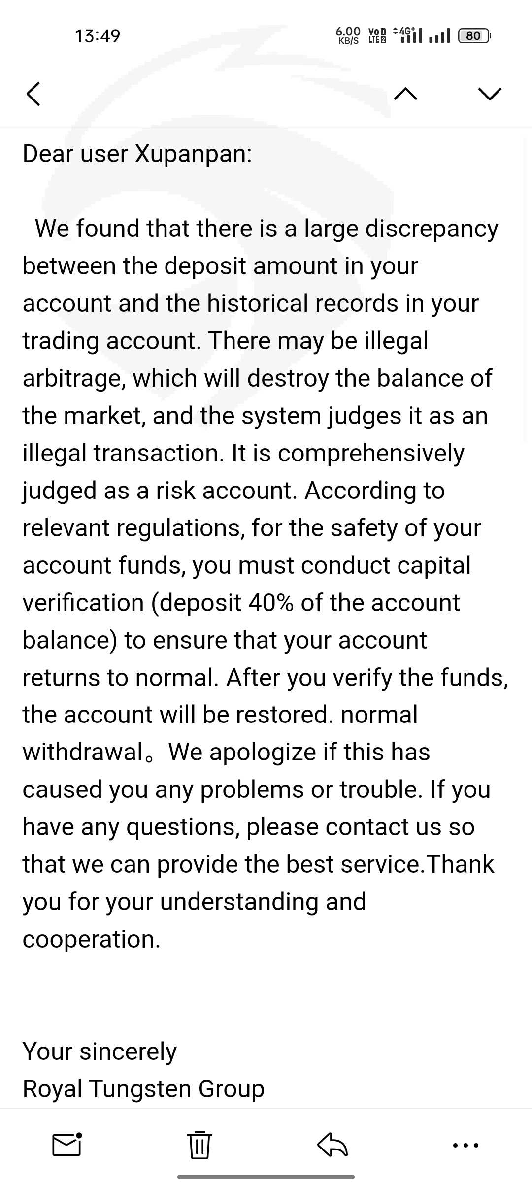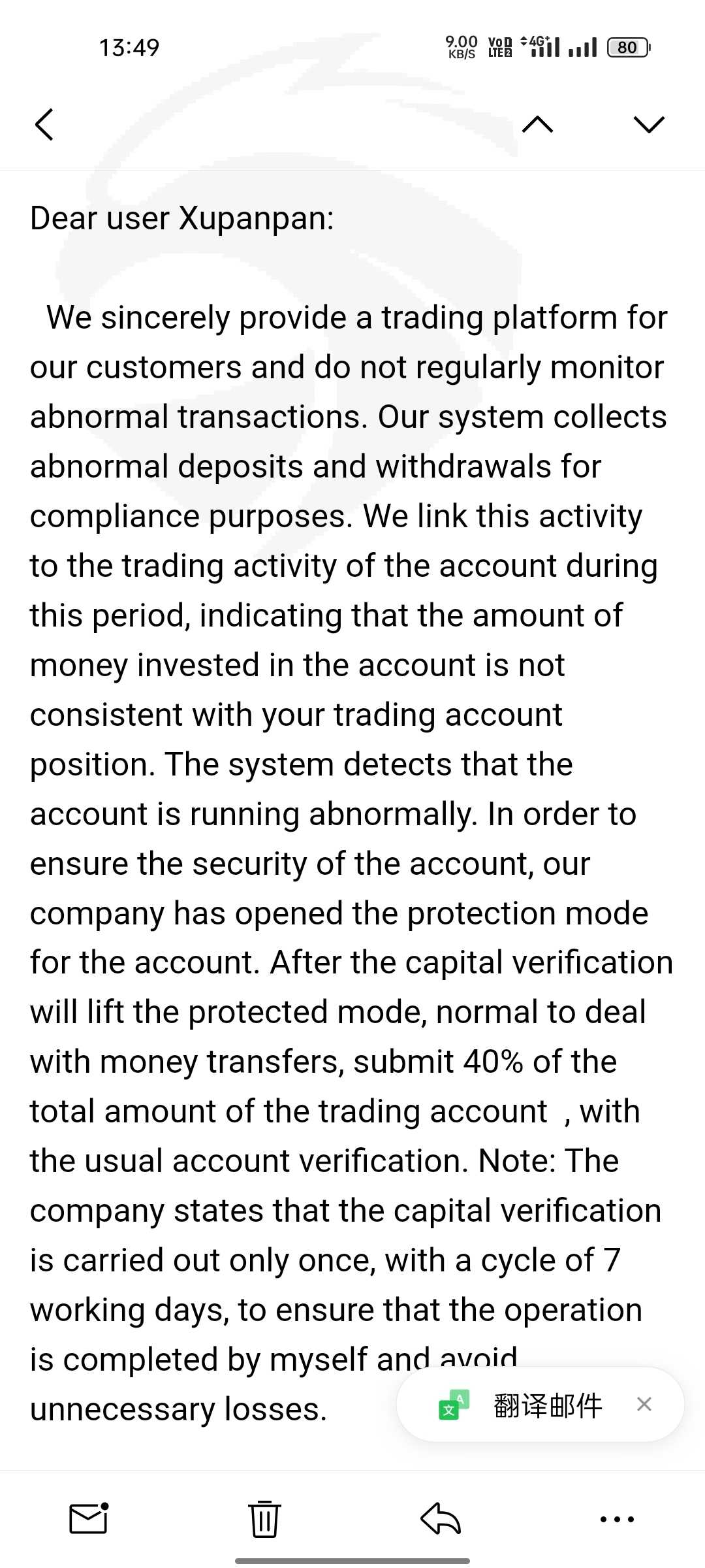 我充值交易一直正常,想取出一部分资金,开始是系统维护,一直持续了两周,后来出金一直被驳回,现在平台说我的账户异常审核了四周,然后通知我账户异常被冻结,让我充值交易金额的百分之四十验资,我感觉被骗了