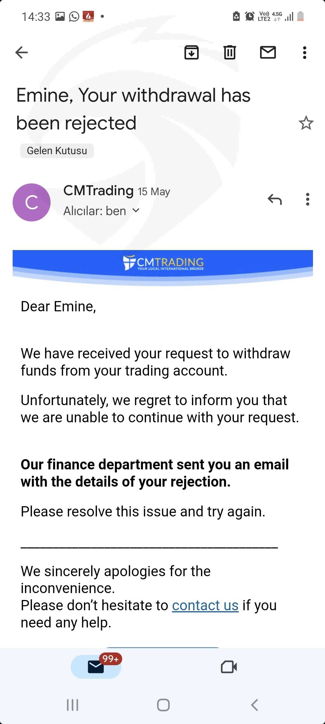 我无法从我的 CMtrading 账户 ID:140976643 中提取 4500 美元。大家能帮忙吗?附上了所有文件。我一月份在的机构以各种借口欺骗我。我只想提取存款。