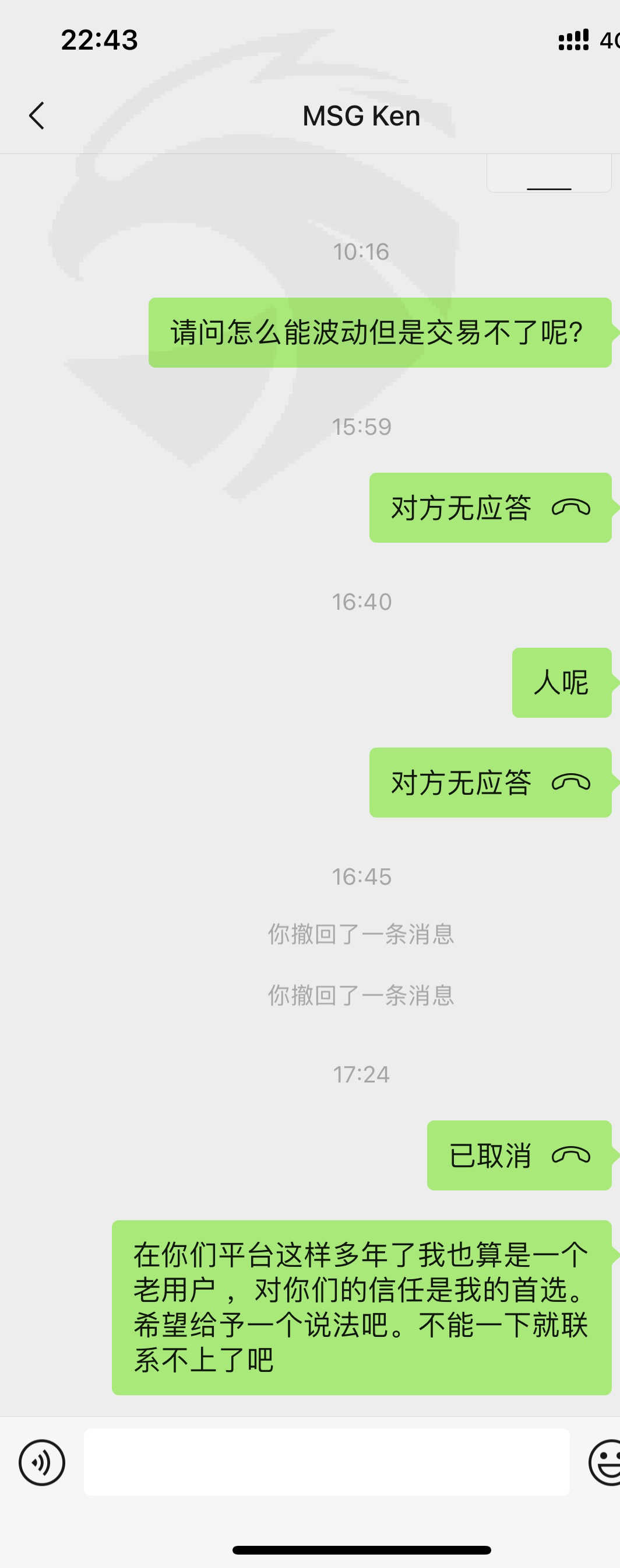 无法出金,联系不上客服,发邮箱不回微信联系我不回。最离谱的是产品波动界面无法产生任何交易。