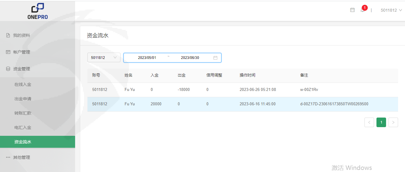 我在外汇平台上交易 OnePro两个多月了。我的交易账号是:5011812 我进行正常交易 OnePro。我可以显示我的交易历史和存款历史。这是我第二次退出,我无法退出。第二次提款7000美元于6月30日存入,已拖延两周多仍未扣除。由于交易所正在考虑延迟,一方 OnePro没有给出任何其他答案。作为外汇平台,提现利润很重要,账户里还有18,000美元。我现在的抱怨是经纪人先处理了我的 7000 美元提款,然后是我账户中的余额。我也希望平台能帮助我联系 OnePro处理,奉劝大家远离这种交流! !