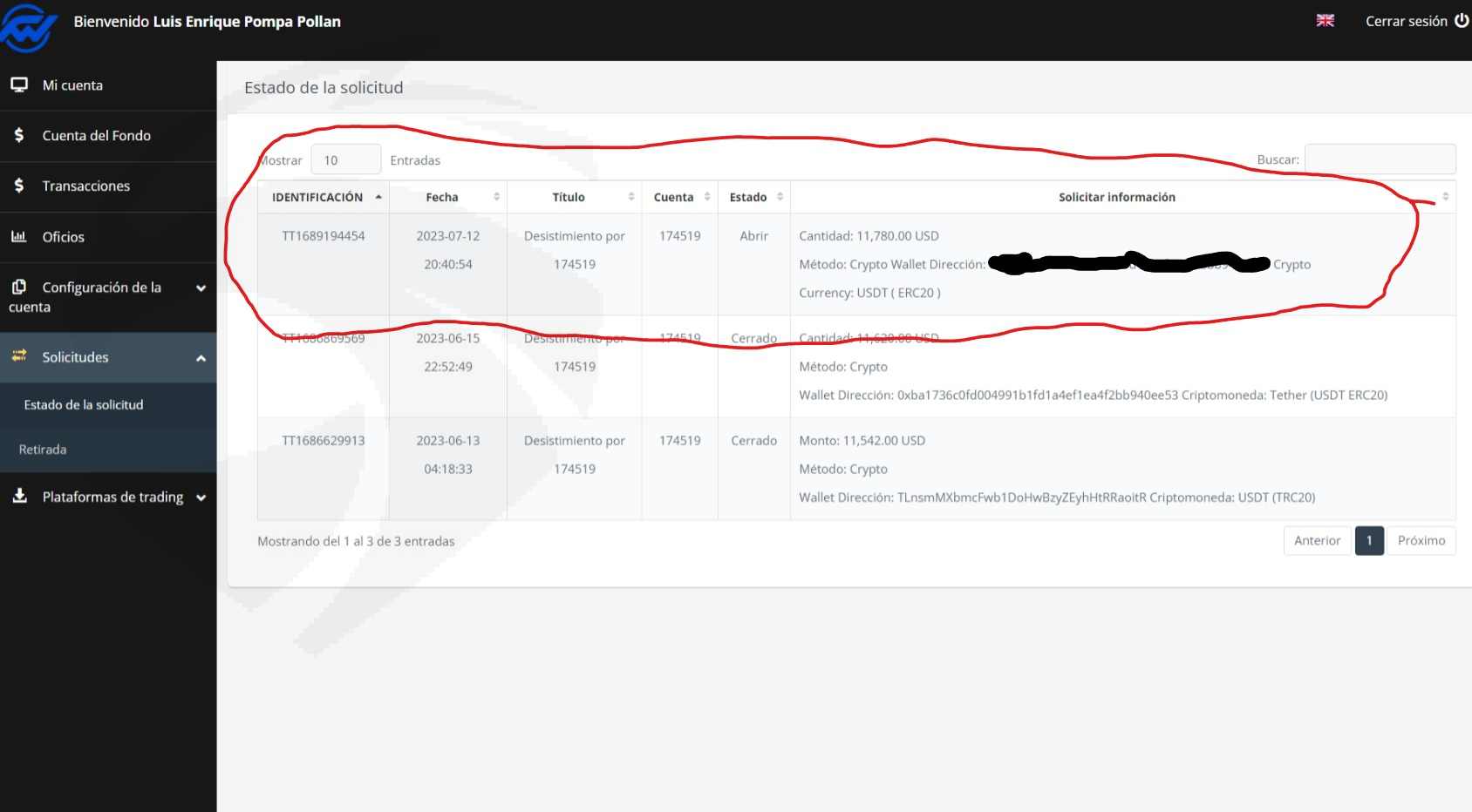Desde el pasado 16 de junio del 2023 , he intentado extraer mis fondos a una wallet externa ,con el fin de recuperar mi dinero por sospecha de una estafa. lo cual se me ha hecho imposible al igual que a otros usuarios. El monto es 11 781.00 dólares. La suma que he querido extraer es de 11 780.00 . Al realizar el retiro, no cumplen con las instrucciones ya que es imposible subir el documento , la imagen con tu rostro y un recibo de domicilio que solicitan. Realmente quisiera recuperar mi dinero y estaría muy agradecido de recibir cualquier ayuda.