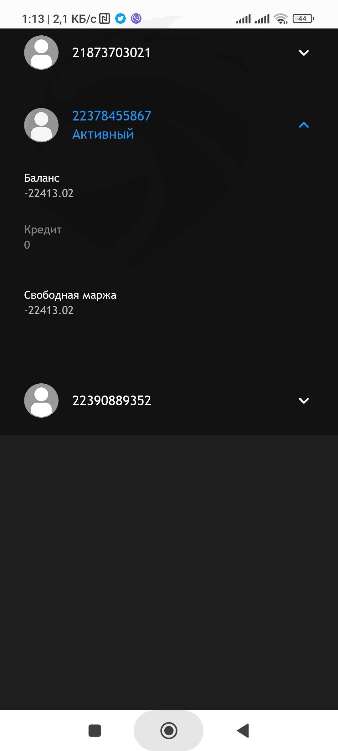 Приветствую вас! Мой торговый счёт 22378455867. Хочу сказать что за всё время работы были моменты когда я по моей не опрятности и не осторожности попадал в неприятные ситуации, но я за них платил деньгами и временем чтобы исправить, два раза меня опускали они в минуса, и не всегда по моей вине, но получалось всё исправить, Я за всё это время морально и материально опустел на столько что думал это никогда не закончится. А мой торговый счёт это как наказание, которое тянет меня в долговую яму и только портит мне жизнь. Я не в состоянии терять все ресурсы которые на это потратил и ограничивал себя и своих родных во всем и людей которые мне доверили свои деньги.как только ситуация становилась лучше они опять давали или гэпы или usndx так что я опять проваливался в минус ! и опять пытаюсь в очередной раз вытянуть счёт что не совсем хорошо получалось четвертый месяц с моим аналитиком. И в итоге что ? Ничего ? В компании есть вообще какое-то ответственность и гарантии или страховки от таких моментов. Я потерял всё. Это все что было у меня плюс чужие ресурсы в надежде заработать. За прошедший год не было ни одного нормального вывода что бы я перекрыл хотя бы проценты которые должен был отдать.я уже не говорю про свой заработок! Постоянно отрабатываю минусы и кормлю маркет или ещё кого-то но не себя. Вы наверное не можете представить как это всё мне портит жизнь. и с чего мне дальше жить и рассчитываться по долгам.?