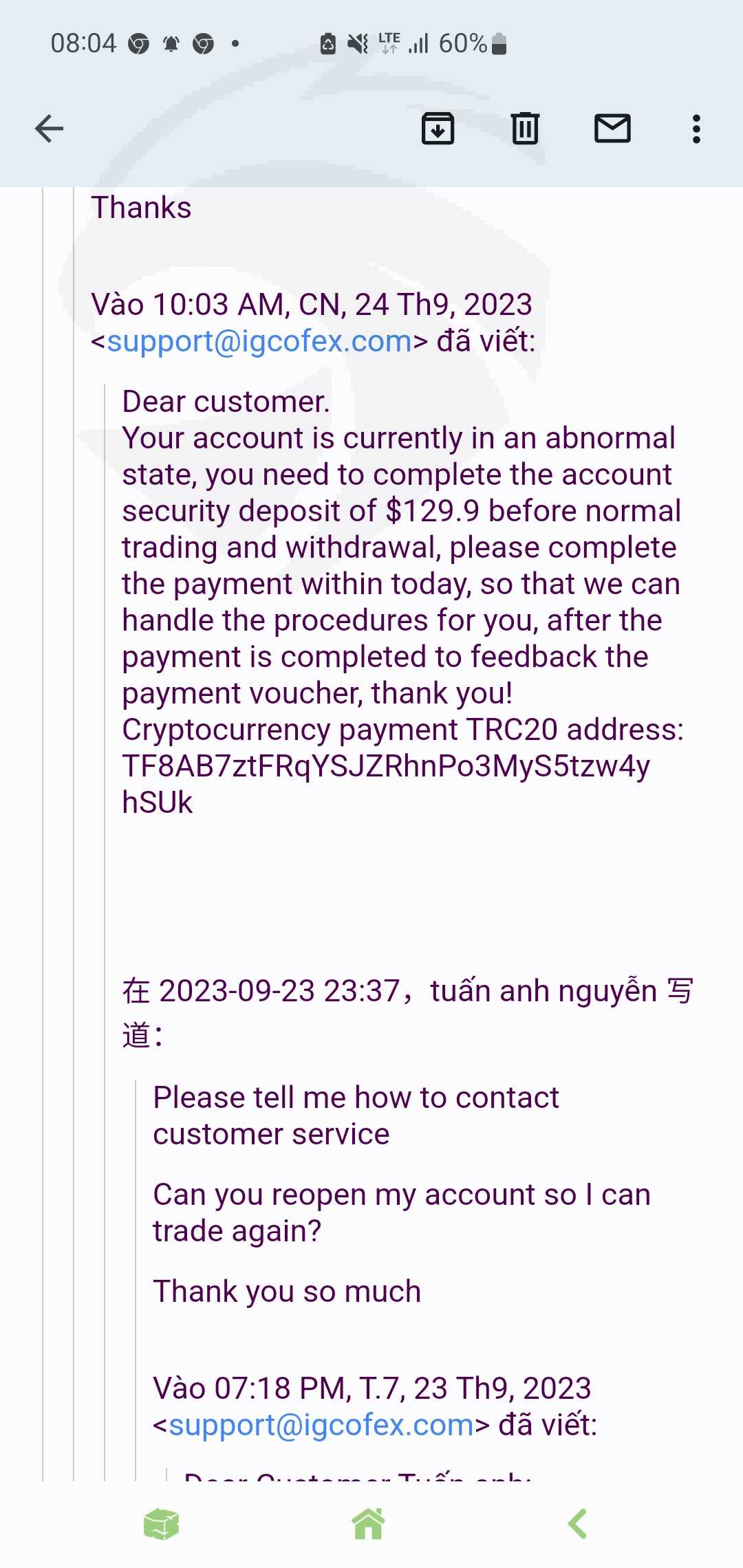 Sàn không cho tôi rút tiền. Và đóng băng tài khoản của tôi. Bắt 30% số tiền mới cho mở lại