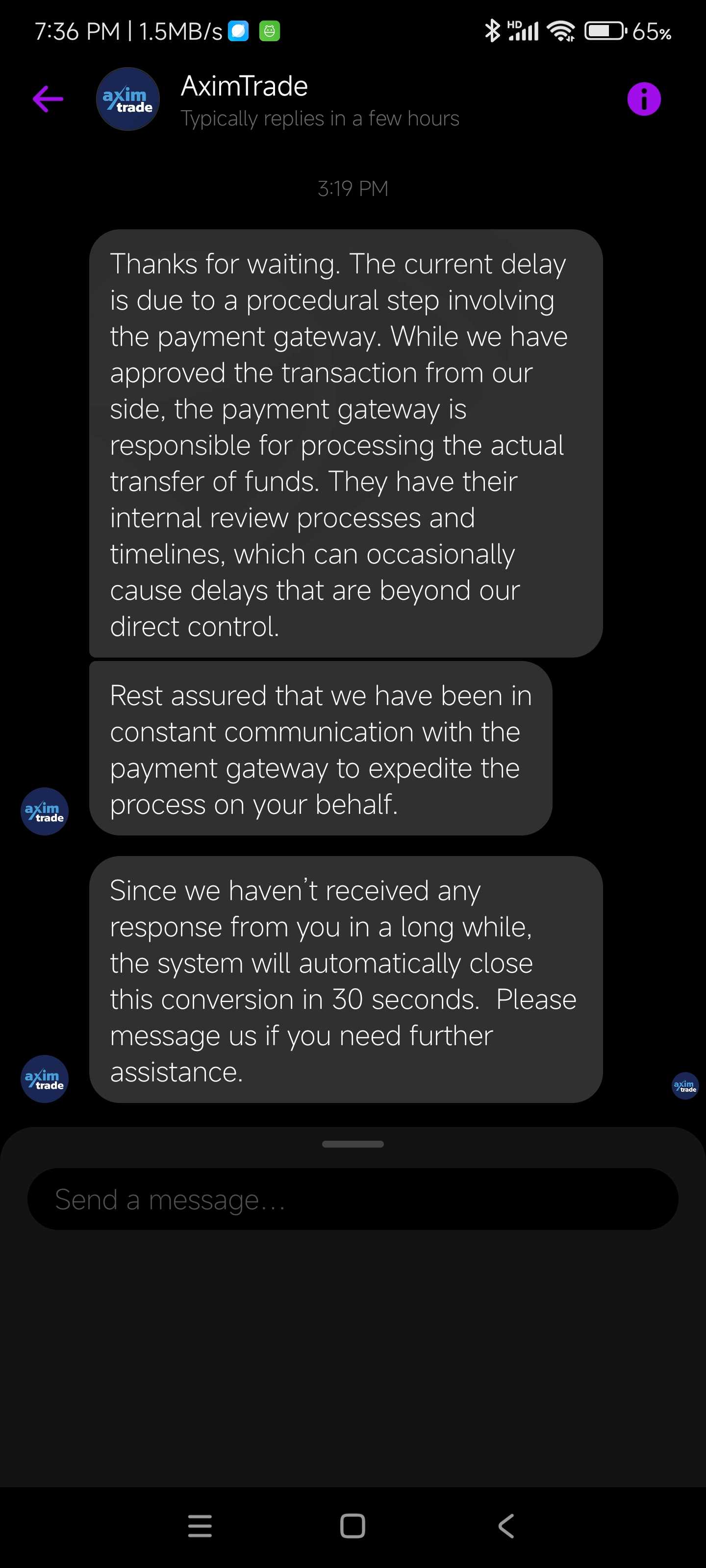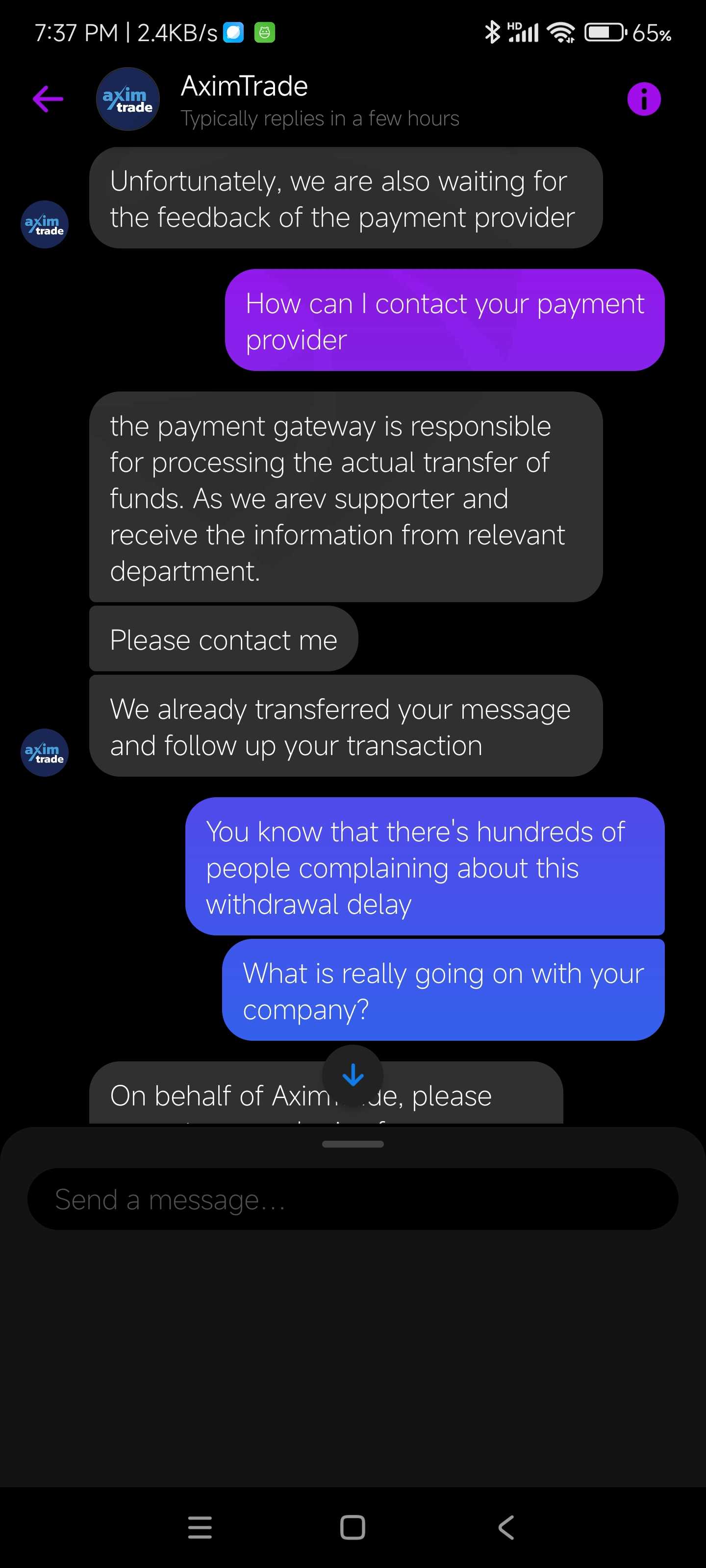 我在 9 月 17 日出金 22 美元,已经一个月了,至今仍未到账,现在已经是 10 月 16 日了,我每次问他们,他们都以同样的借口推脱,说都是他们的支付网关提供商没有收到反馈,他们有自己的内部流程等等。自己看吧