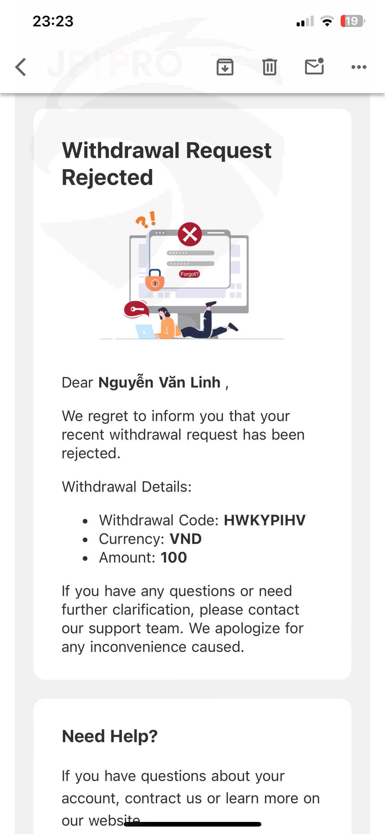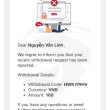 tôi nạp tiền vào giao dịch và không thể dút tiền được. tôi muốn được biết lý do vì sao. và làm sao tôi mới dút được tiền từ sàn và đây là bằng chứng