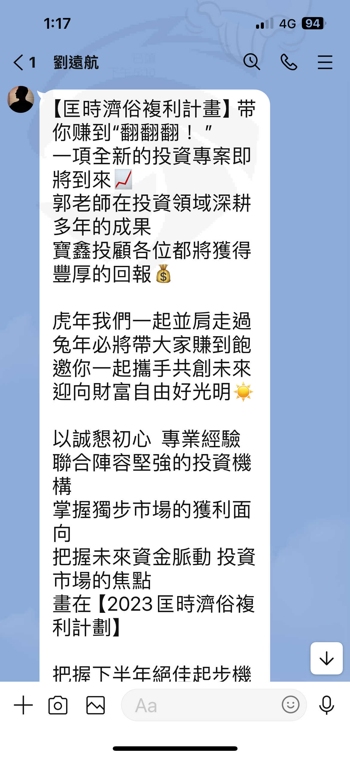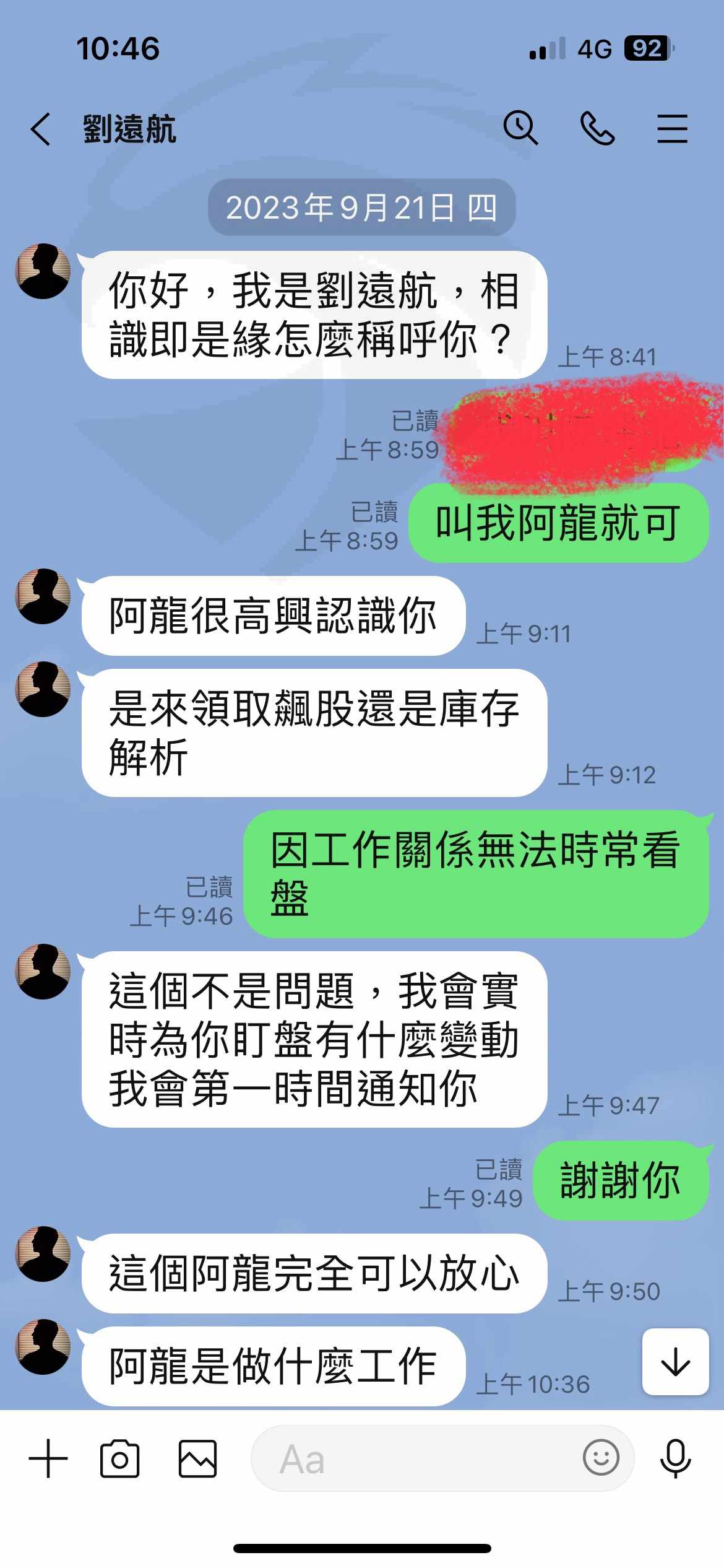 12/9在line有再連絡到12/15起寳鑫投控劉遠航及V陳致遠起不讀不回,