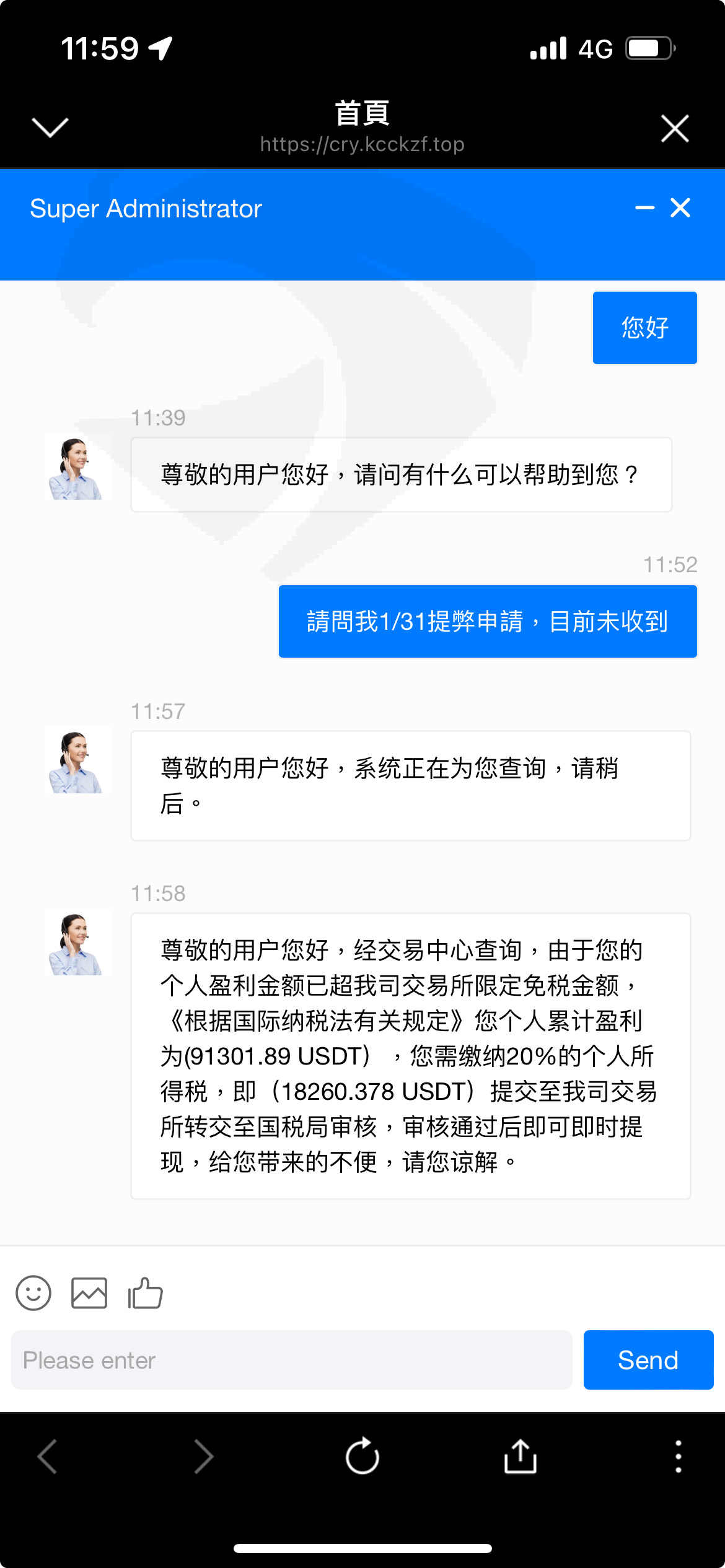 在IG上認識李姓男子,隨後積極要求加入LINE好友,聊了一陣子後李先生表示自己透過入侵海外平台獲利,並同時開啟了一個美金30萬額度的端口協助獲利,我表示我沒有資金且也對此也不了解,李姓男子表示願意協助籌措資金,獲利後我可以拿取獲利,最後透過借貸投入了約美金2萬元(折合台幣65萬元);在CryptoDFmeta 平台盈利後透過客服出金,表示金額超過美金9000元故需支付20%稅金始可順利出金,因無力負擔稅款而告知李先生,他表示他也無力再協助稅金的部分,同時也告知可能會面對刑責問題,後透過搜尋,才發現交易網址為非正當網站