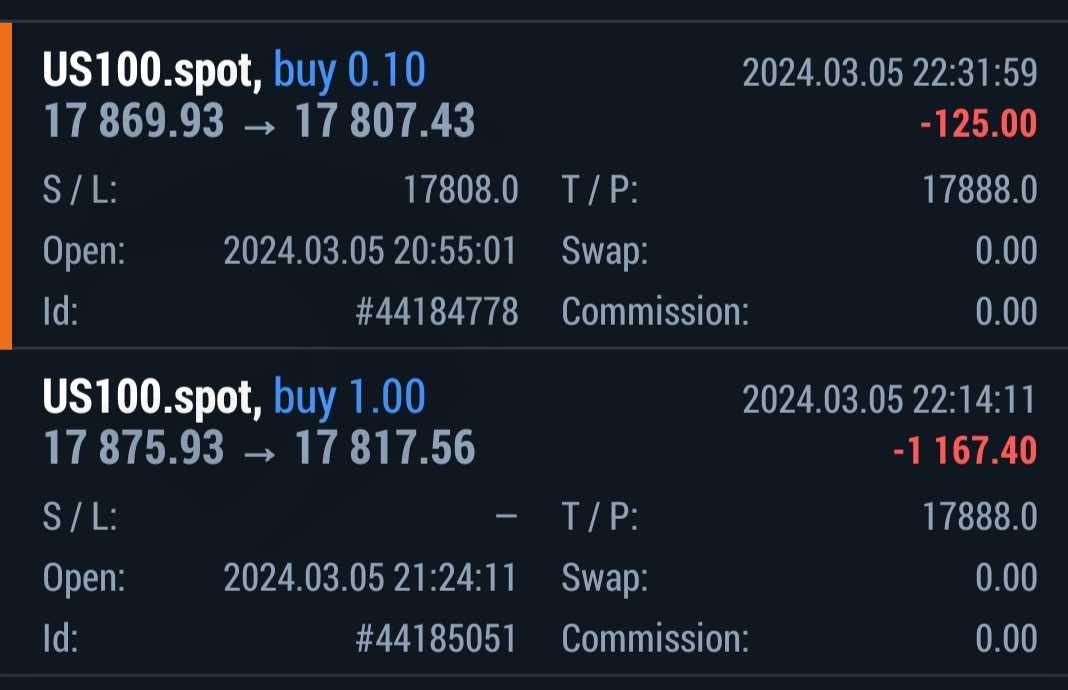 昨天我在 Nas100 上进行交易,没有使用任何止损,但交易仍然被关闭。 在那段时间我有 1000 美元的资产,我也没有关闭那笔交易。