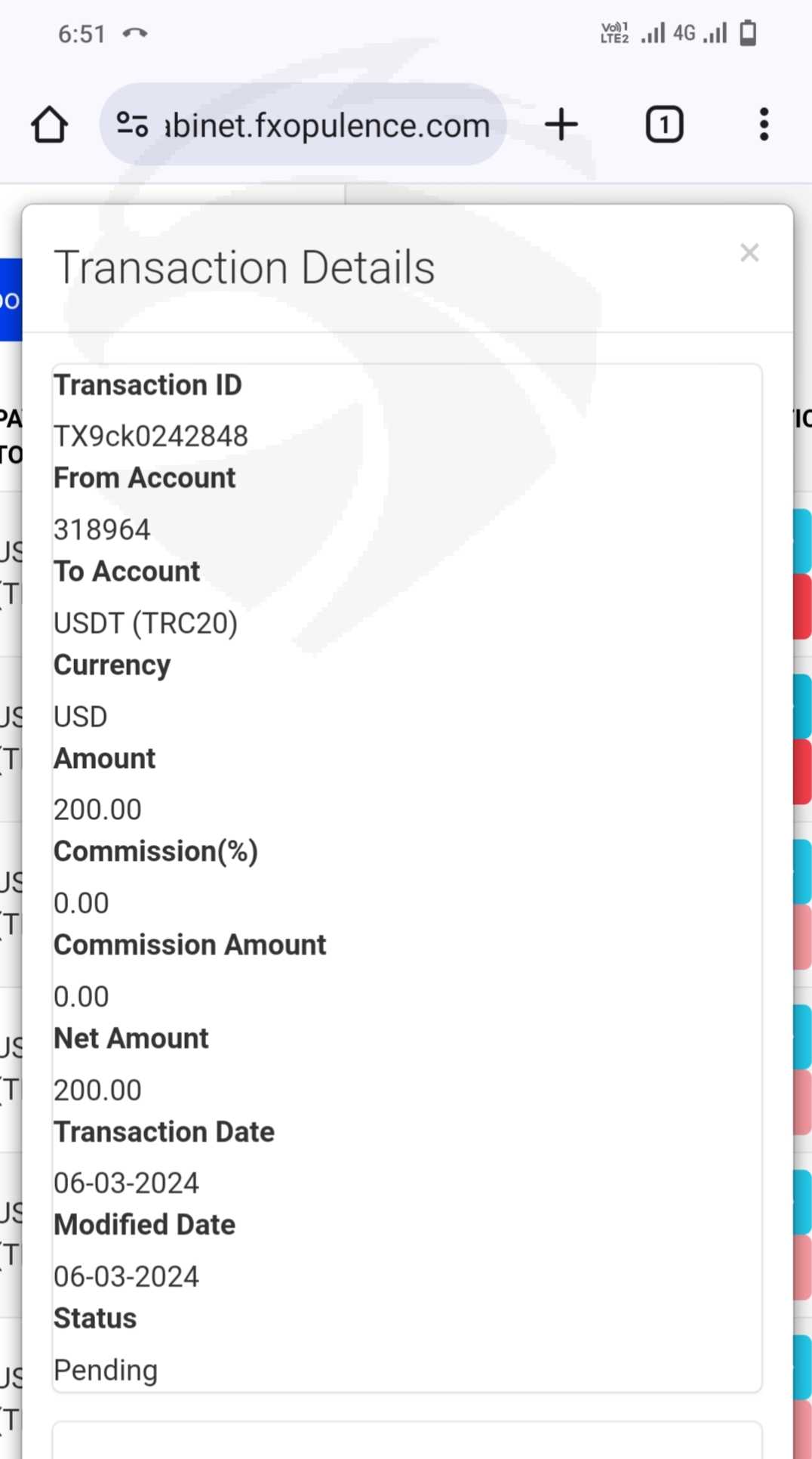 pending withdrawal request from 6 March.