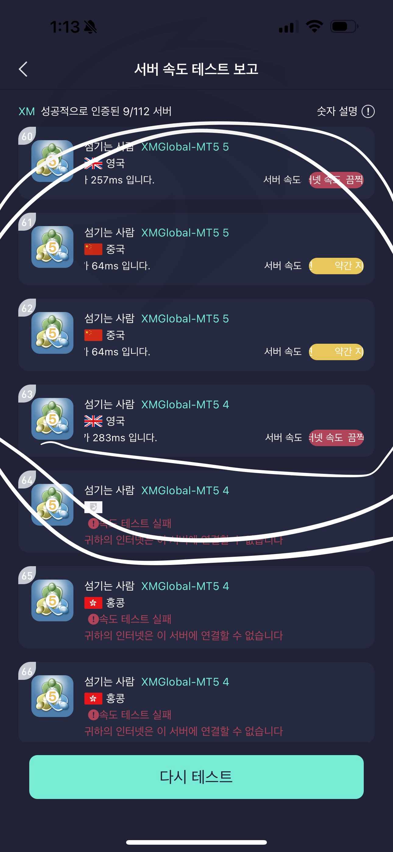 정식 라이선스를 가지고 있는 모든 거래소가 테스트결과 정상이었지만 GFS경우 움직이지 않으며 연결 된 서버 없음
