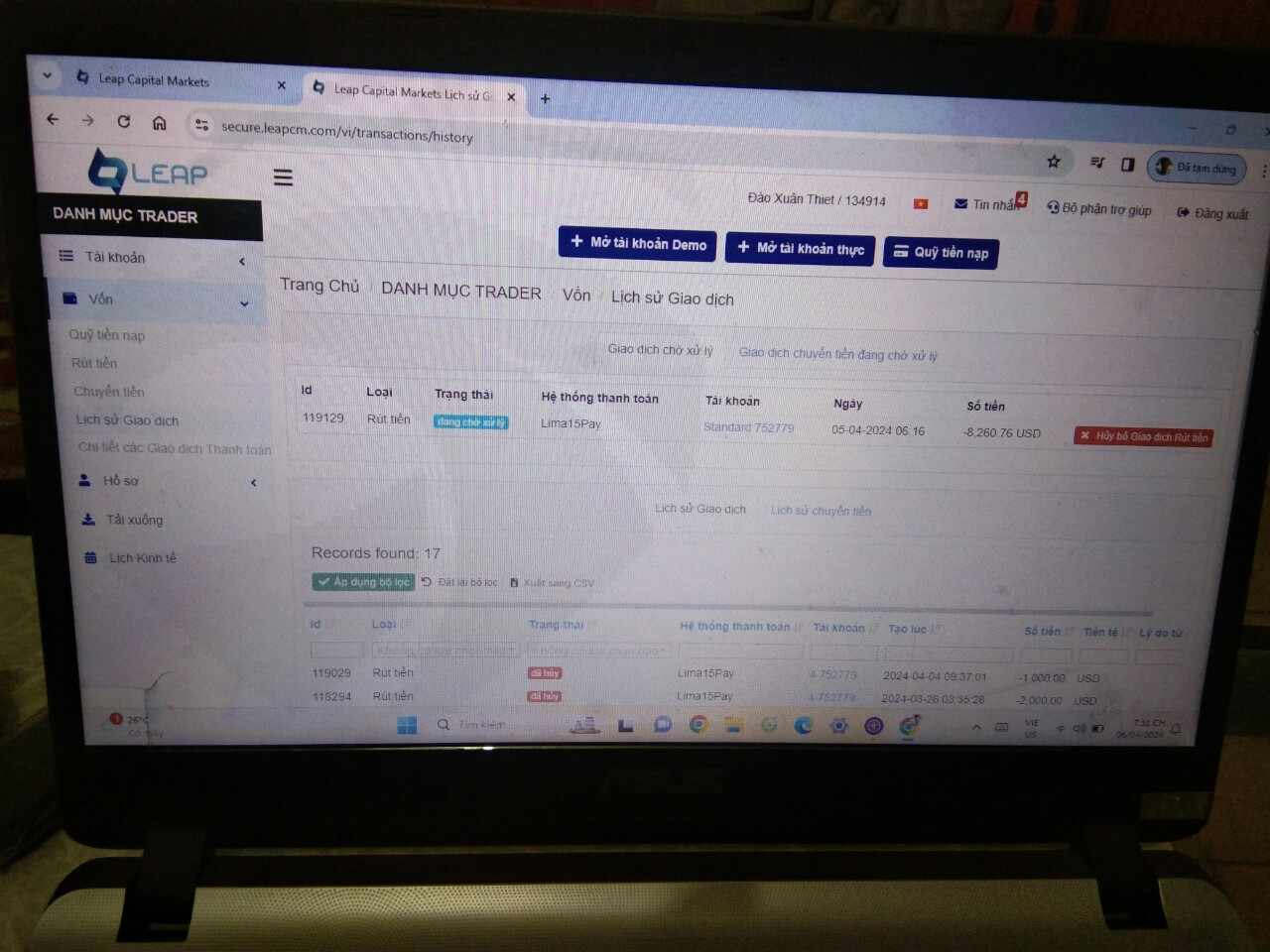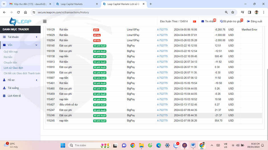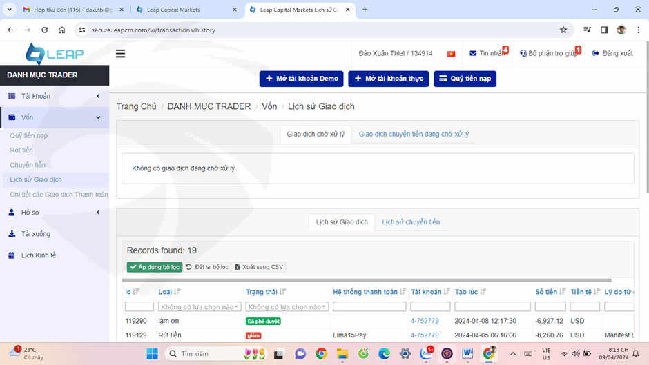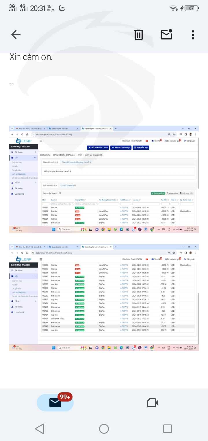 Sàn leap catital markets (leapcm.com) xử ép, vu khống, chiếm đoạt tiền của tôi là 6927,12usd
