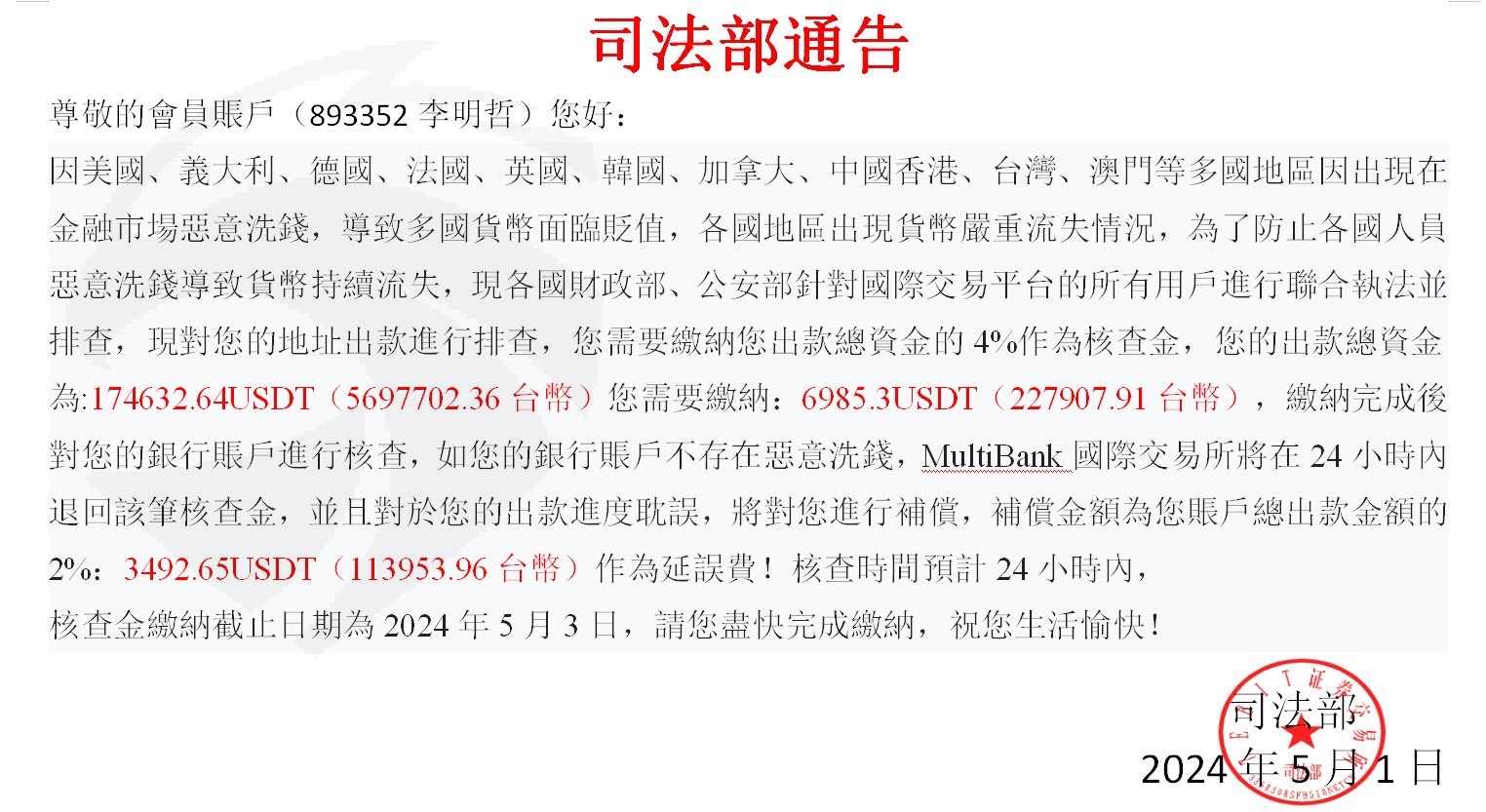 使用SUPER AI OPTIONS 7軟體,搜尋multibank group ,操作外匯交易,出金時客服說要繳納所得稅,繳納後表示有疑似洗黑錢風險,需再繳納查核金,以上是否為詐騙呢?