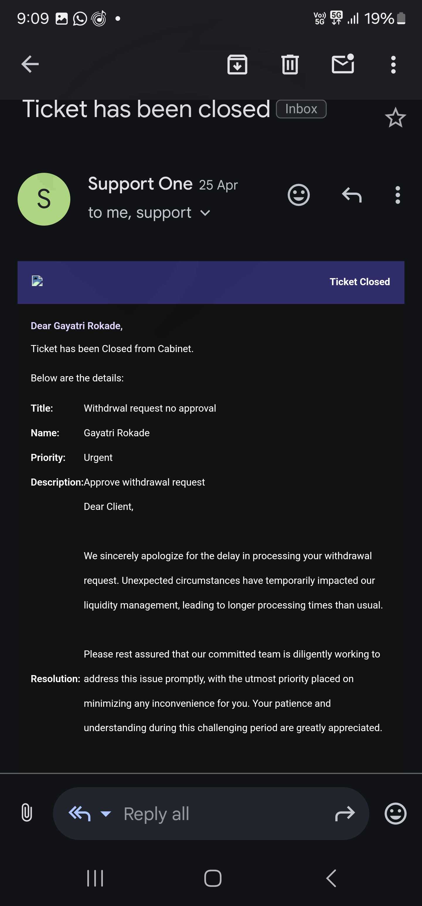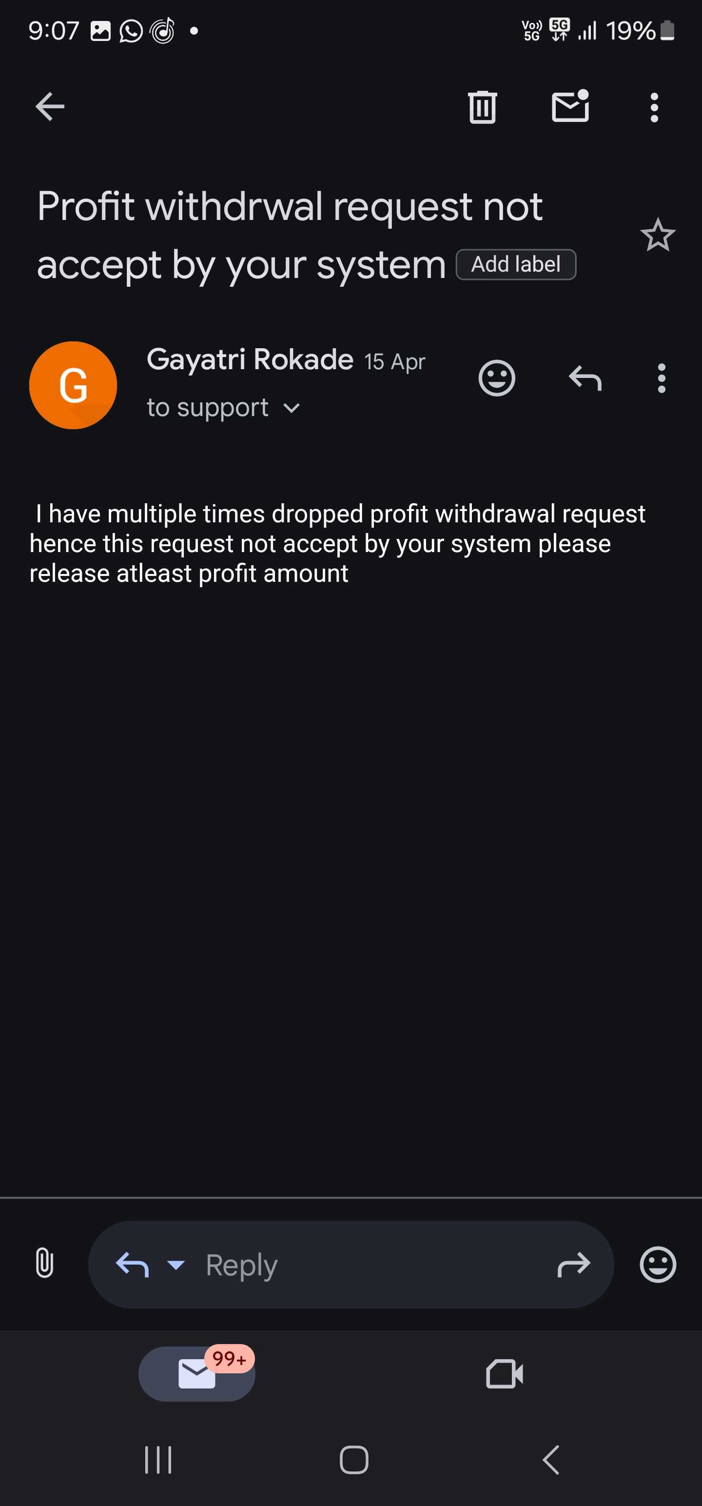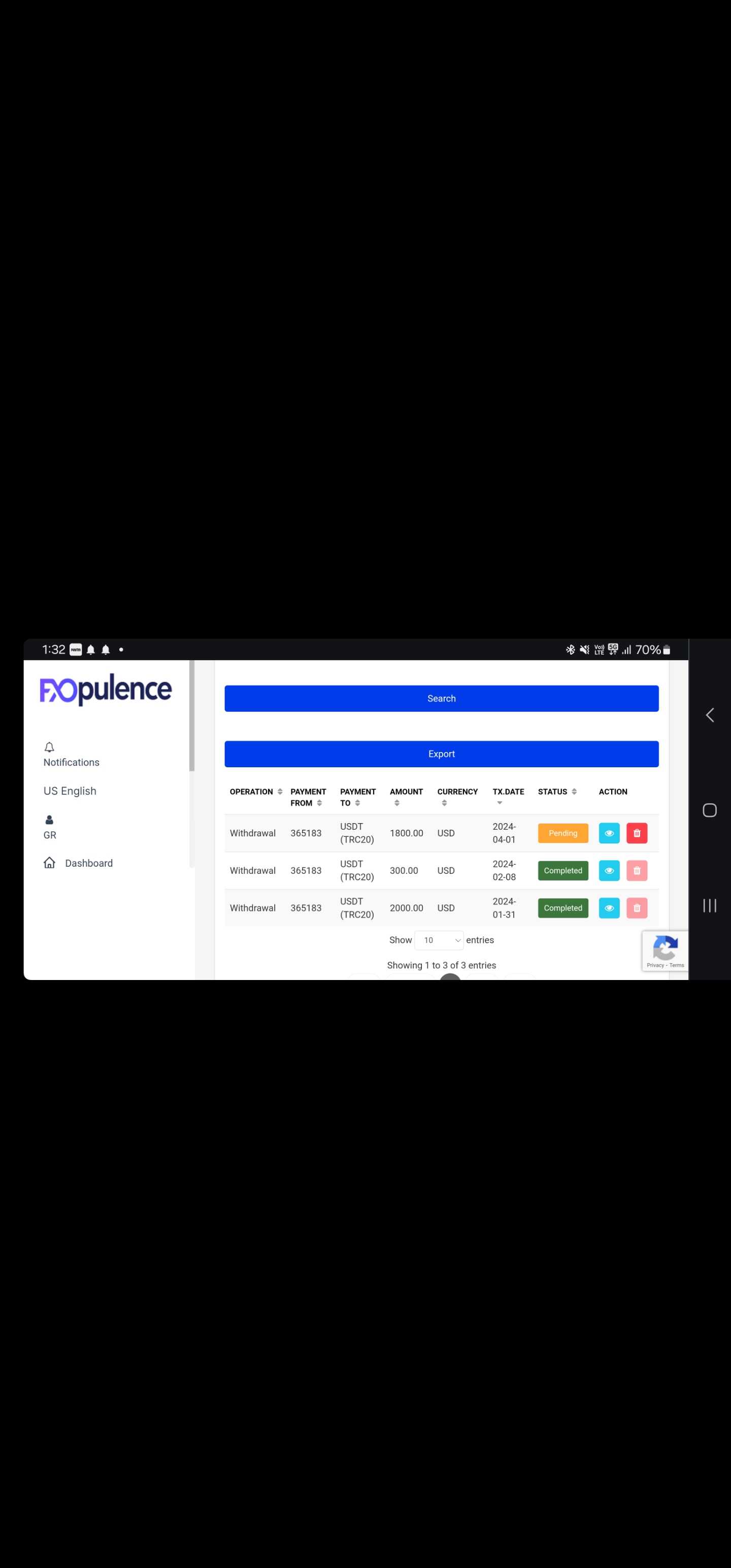 我已经投资了1192140印度卢比,即[13246 USDT],我已经多次发送提款请求,但是这个经纪人无法接受提款请求。这个经纪人给我发邮件说由于网络攻击,无法提取USDT。这个fxopulence经纪人没有给我钱。