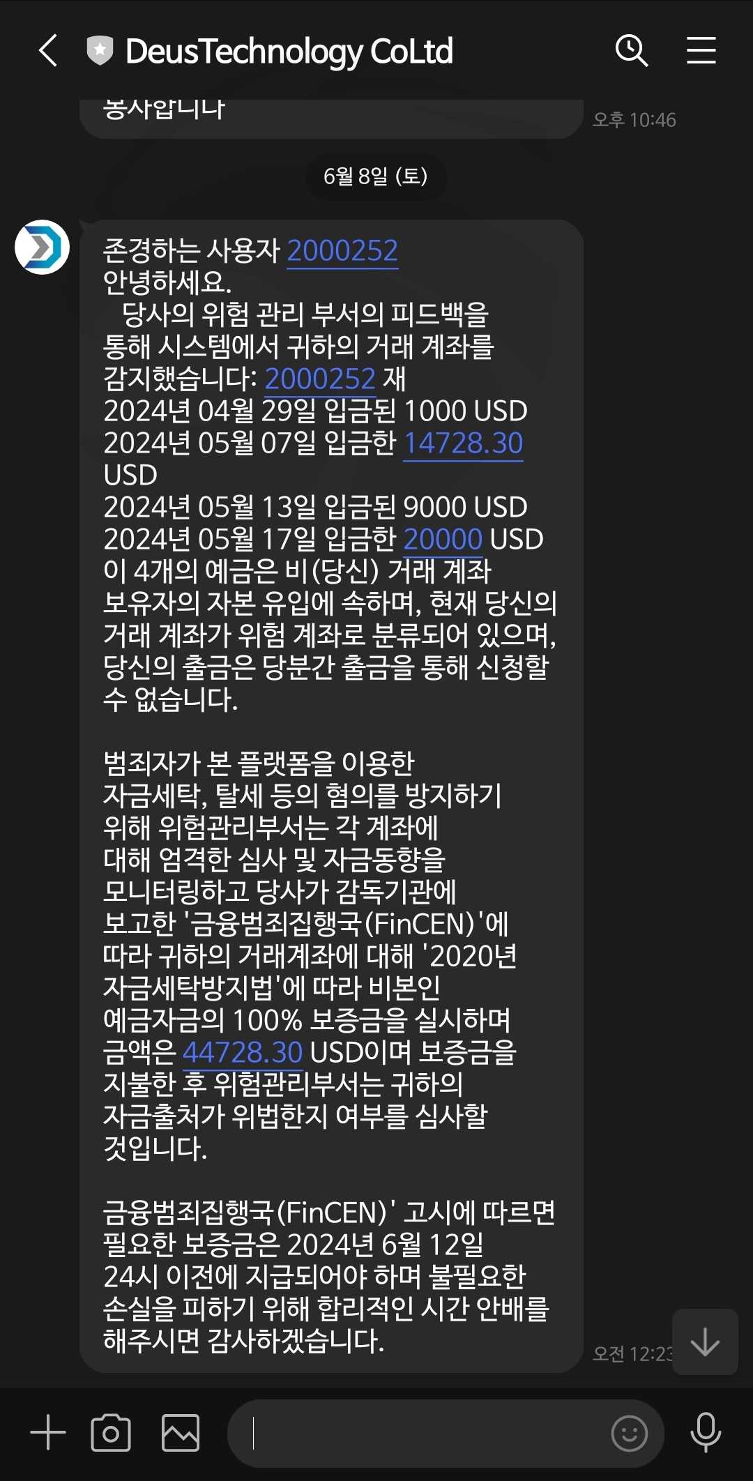 Because of the breach of the warehouse interest rate contract, I paid the penalty and then applied for the withdrawal, but the withdrawal is prohibited because I deposited it into a third party account. I didn't say anything else when I deposited it on the same day, but this happened. A third party also does the same transaction and uses the same securities company, but if they don't deposit 100% $44,728.30, the withdrawal will be suspended.